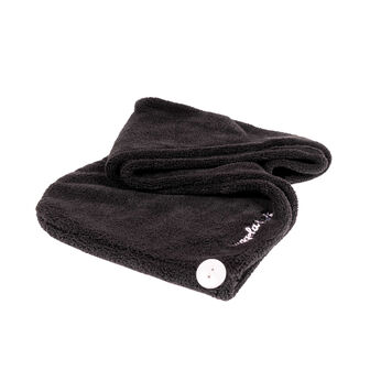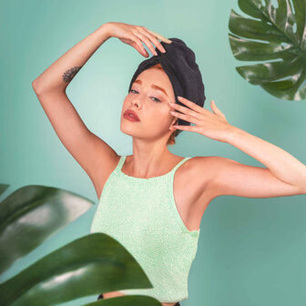 A toalha turbante Balinese da Nuggela & Sulé seca o cabelo mais rápido do que outras toalhas normais, contribuindo para reduzir o frizz capilar.