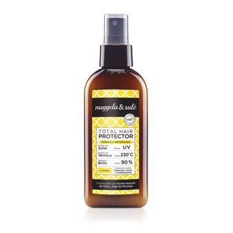 A proteção solar para cabelo Total Hair Protector da Nuggela & Sulé protege o cabelo contra os raios UV, conferindo também proteção térmica.