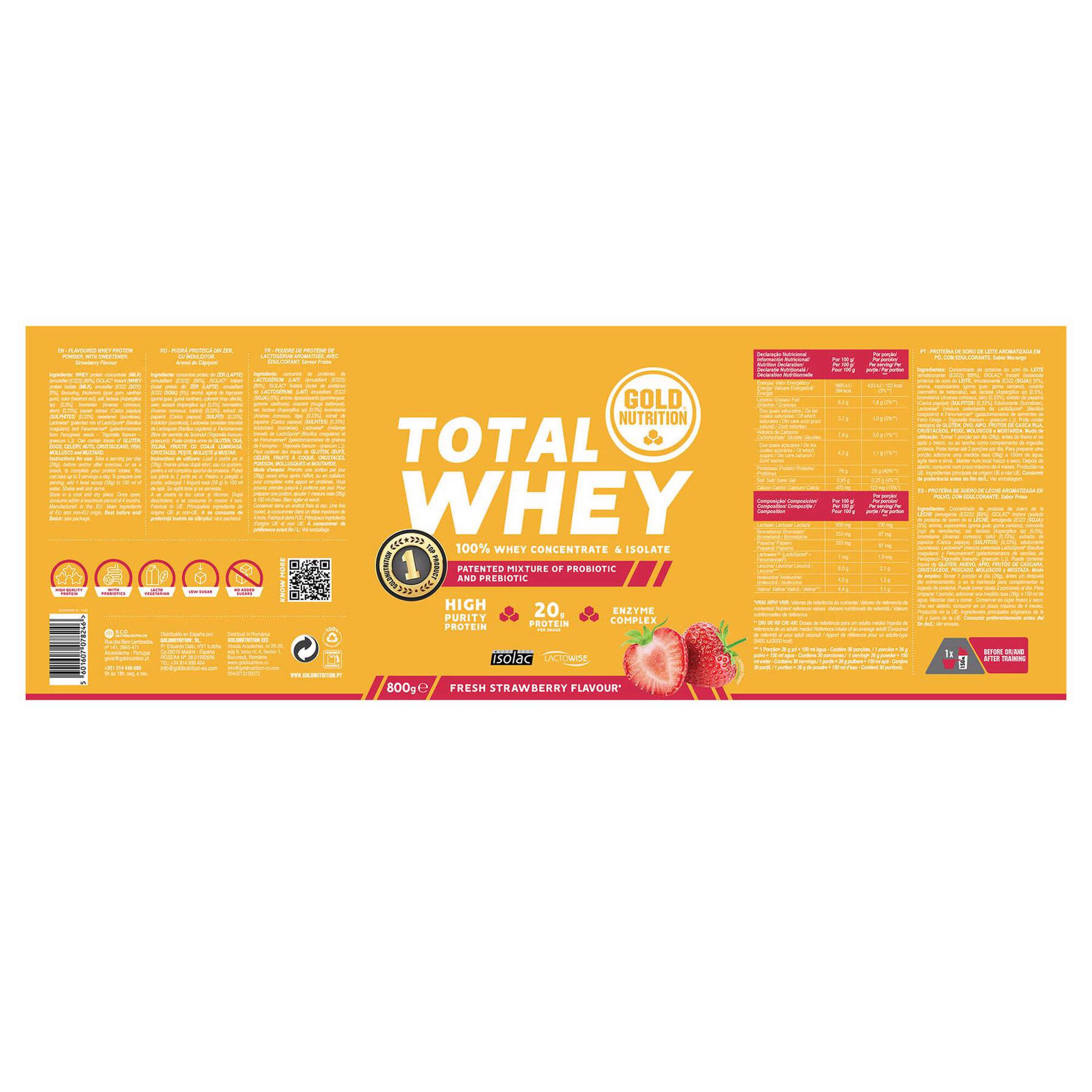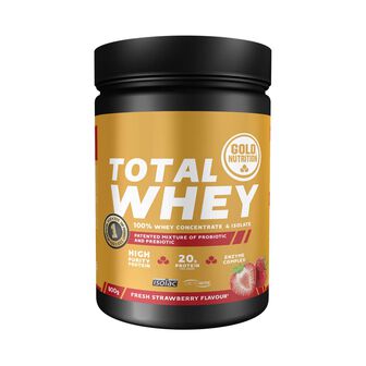 A Total Whey da GoldNutrition é um suplemento em pó à base de proteínas concentradas e isoladas do soro de leite (whey), com baixo teor em gordura e poucos hidratos de carbono. A fórmula inclui um complexo de enzimas digestivas e Lactowise®, um simbiótico patenteado com probióticos e pré-bióticos que favorece a saúde intestinal e otimiza a absorção dos nutrientes.
