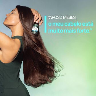 - Reforça o comprimente: Este suplemento alimentar para o cabelo diminui a quebra* e protege os comprimentos graças à vitamina E que contribui para proteção celular contra o stress oxidativo.