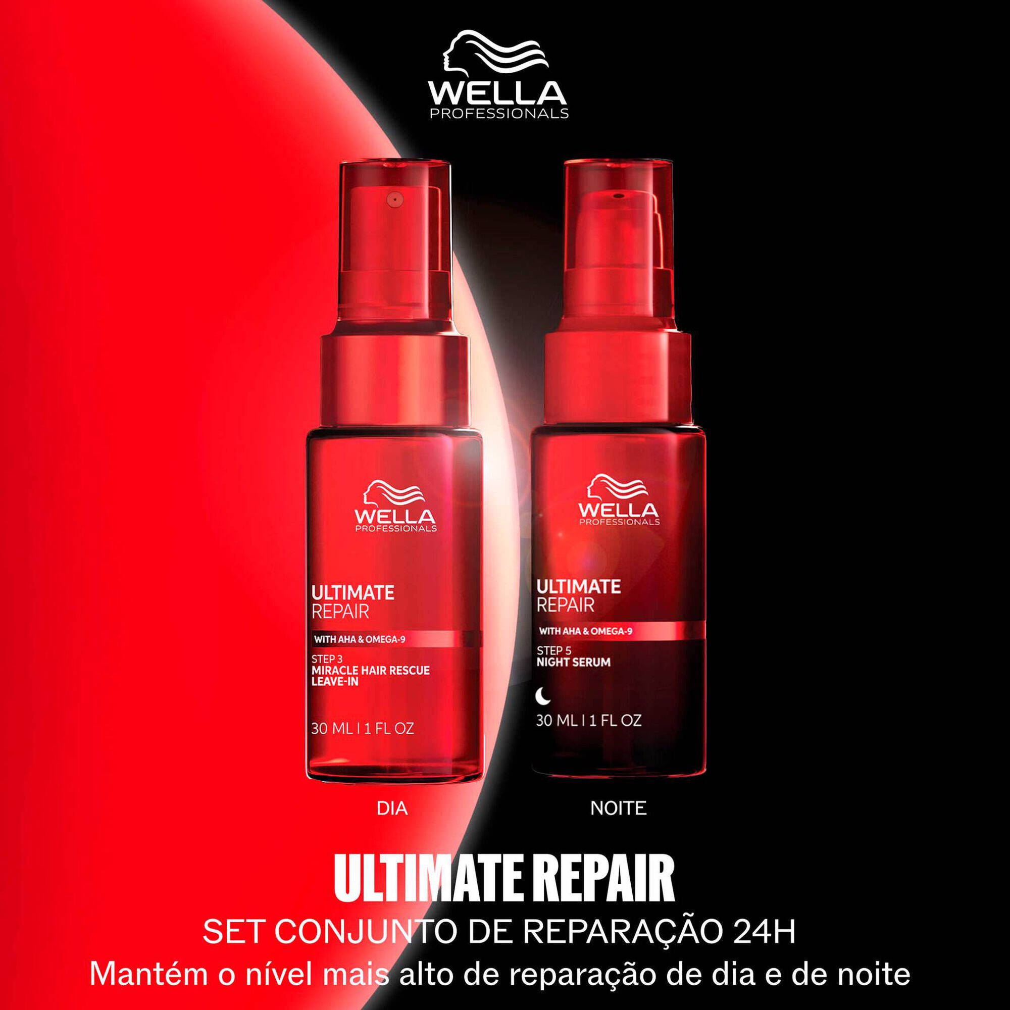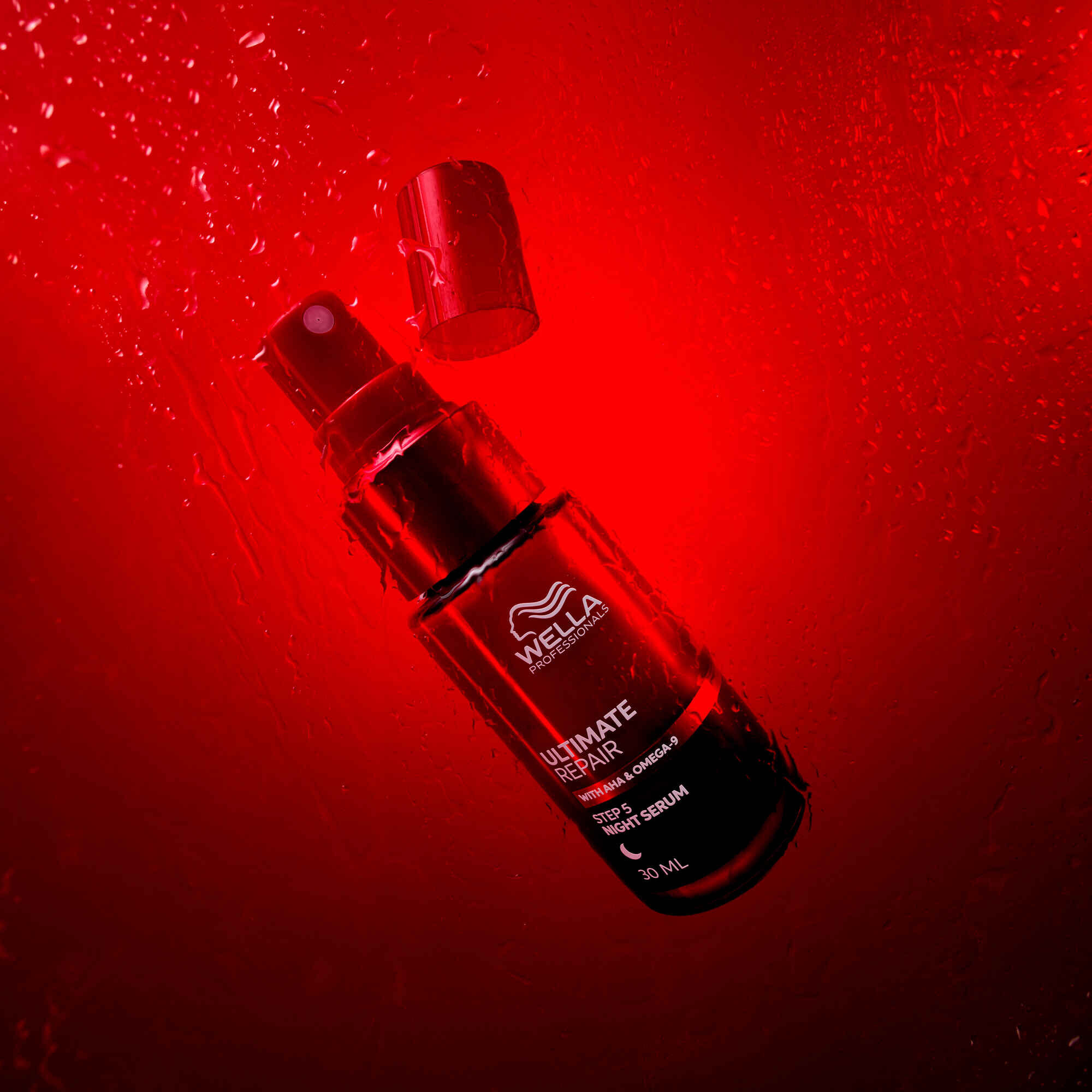 Este sérum de noite sem passar por água Ultimate Repair da Wella Professionals corrige visivelmente a falta de brilho, a secura e a quebra.