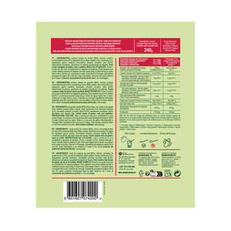 Este suplemento é indicado para complementar a ingestão de proteína na dieta, especialmente em regimes vegetarianos, vegans ou com maiores necessidades proteicas. Pode ser consumido antes ou depois do treino, ou como lanche. Contribui para a manutenção da massa muscular e da massa óssea, ajuda a combater a perda de massa muscular causada pela idade ou pelo sedentarismo, promove a regeneração muscular após o exercício e tem efeito saciante que auxilia no controlo do apetite.