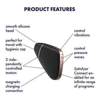 O Vibrador de Clítoris Love Triangle Preto da Satisfyer é um vibrador prático de clitóris com um design sofisticado, que envolve suavemente o seu clitóris com a sua cabeça macia e a catapulta para o clímax como nunca antes com a sua combinação sensual de ondas de pressão e vibrações.