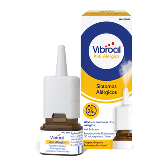Vibrocil Anti-Alergias é usado em adultos com idade igual ou superior a 18 anos para tratar os sintomas alérgicos da febre dos fenos e outras alergias no ar tais como alergias a animais, ácaros e esporos de mofo. Alivia os sintomas incluindo espirros, comichão, olhos lacrimejantes, corrimento nasal, nariz com comichão e entupido, até 24 horas.
