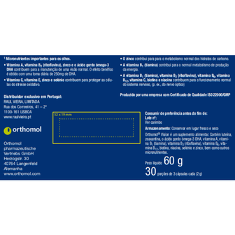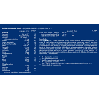 Micronutrientes importantes para a saúde dos olhos. Adequado em situações de doenças oculares como na degenerescência macular e na catarata senil.