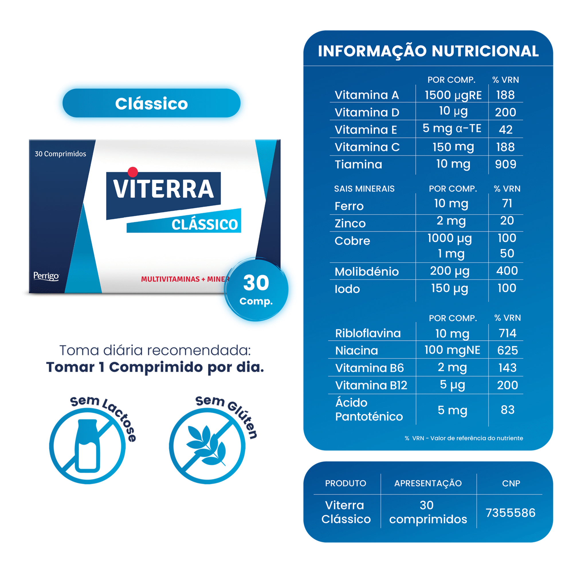 Suplemento alimentar que se adapta às exigências do dia-a-dia, contendo Vitaminas A e C e Cobre que contribuem para o normal funcionamento do sistema imunitário e Tiamina, Riboflavina e Niacina.