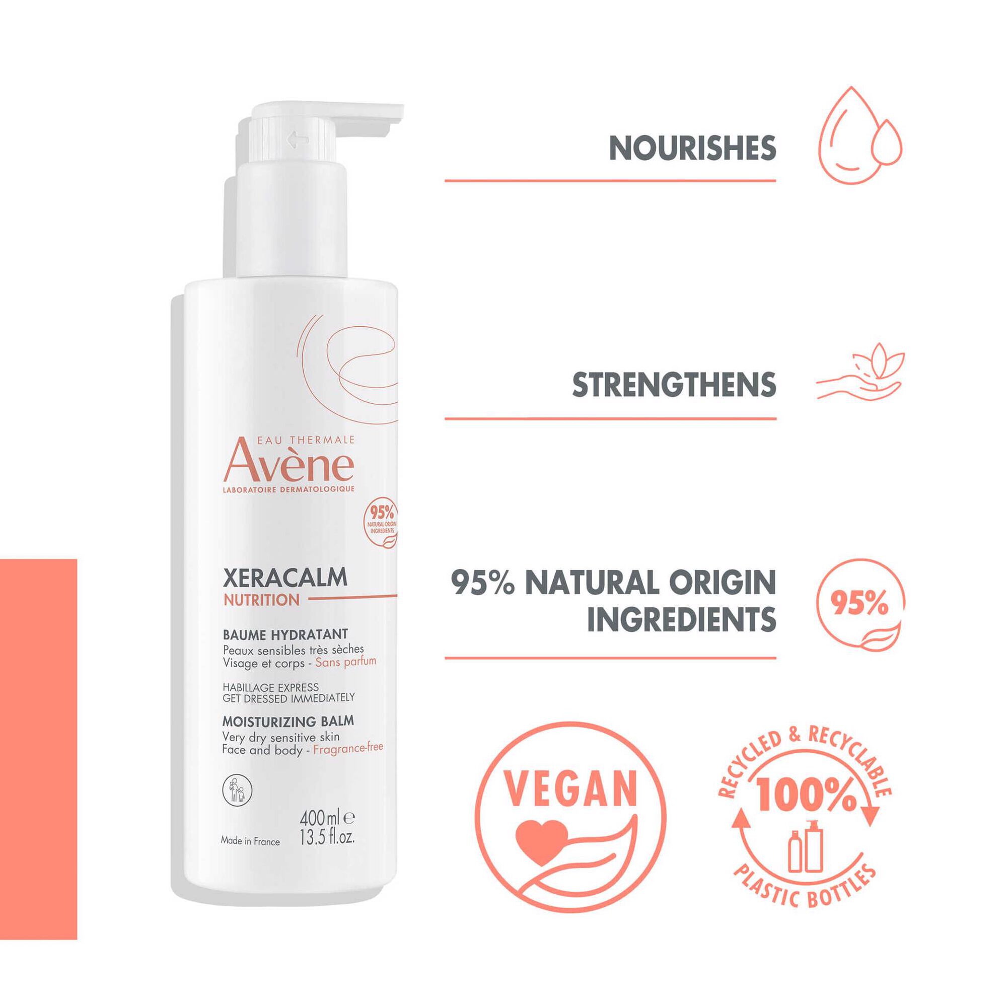 XERACALM NUTRITION Bálsamo hidratante é um produto ambientalmente responsável. A sua embalagem de 400 ml contém 70% de material reciclado. O frasco é feito com 100% de plástico reciclado**
