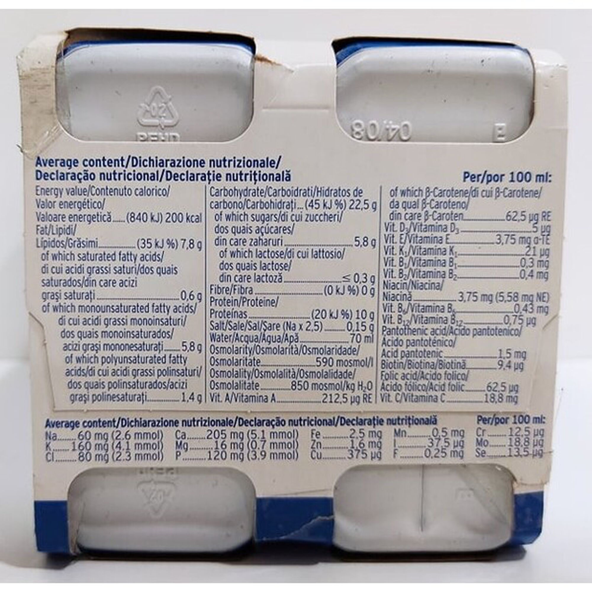 Suplemento nutricional oral completo, hipercalórico (2,0 kcal/ml), hiperproteico (20% energia), isento de fibra. Elevado teor em vitamina D. Clinicamente isento de lactose, isento de glúten. Suplemento alimentar.