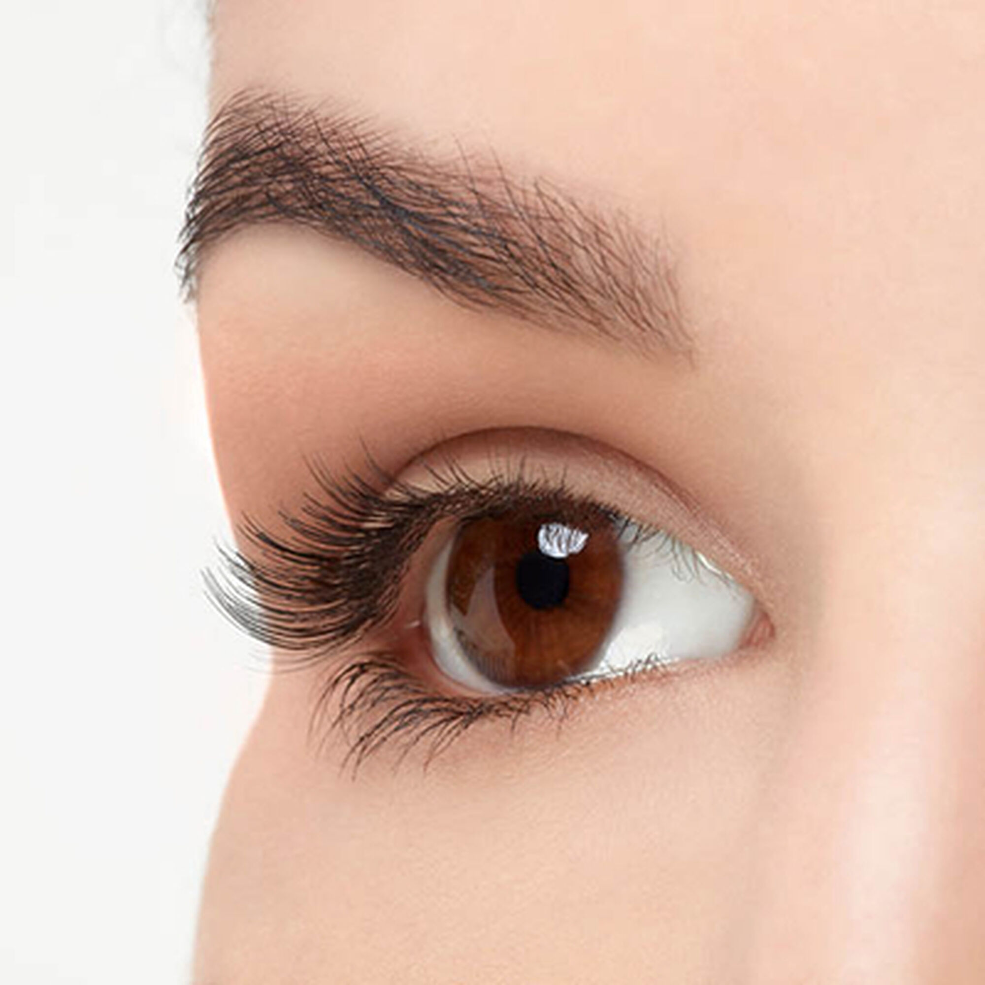 Modo de usar: retire as pestanas da embalagem e meça em relação às pestanas naturais. Se necessário, corte a ponta mais longa. Aplique a cola na borda dos pestanas e espere 20 segundos, depois aplique na pálpebra o mais próximo possivel do início dos pestanas naturais.