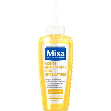 Aplique o óleo antiestrias Mixa nas áreas propensas a estrias, como abdómen, peito, braços, pernas ou nádegas. Com a ponta dos dedos, friccione o óleo antiestrias na pele com movimentos circulares suaves para facilitar a absorção da fórmula.