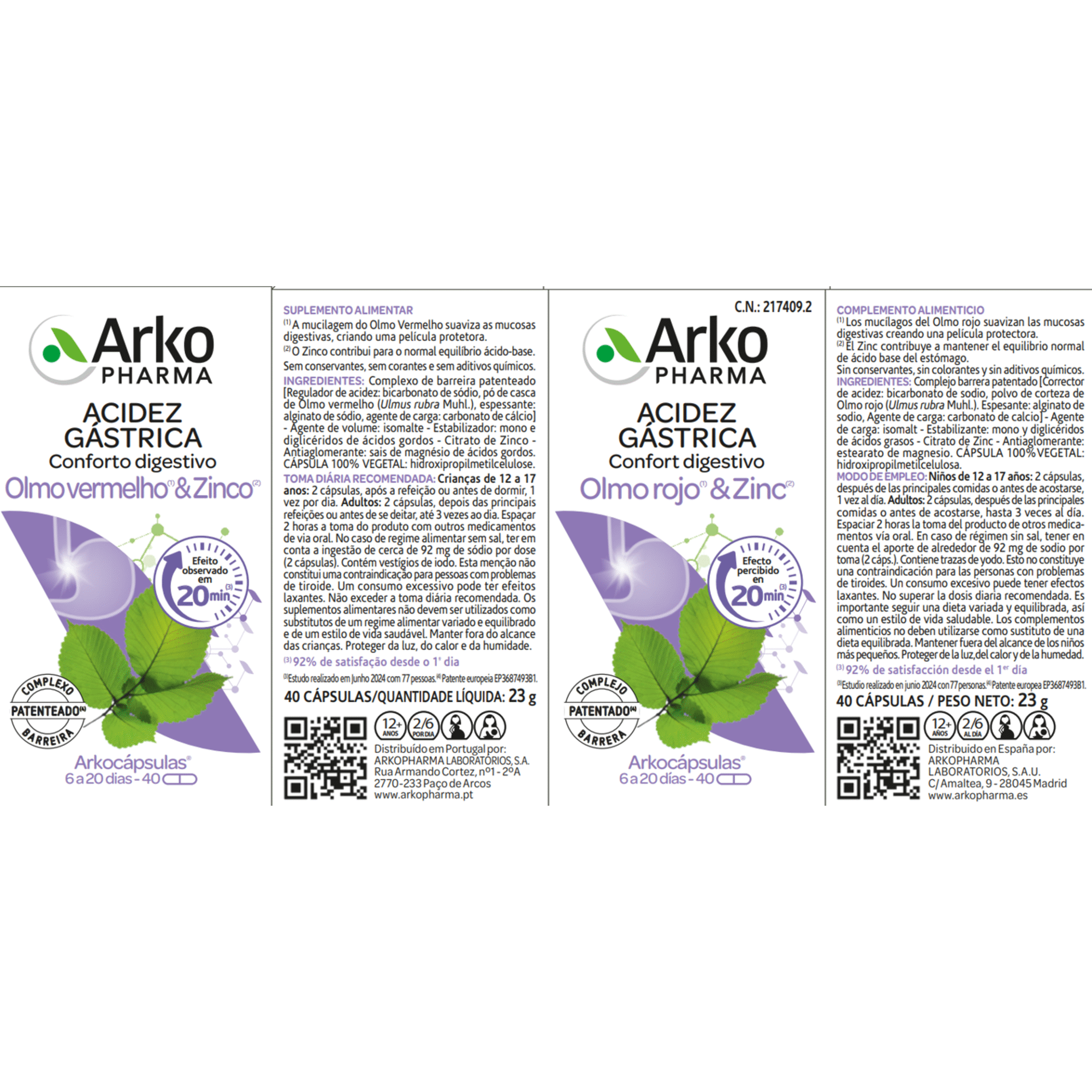 Arkocápsulas Acidez Gástrica Olmo Vermelho & Zinco