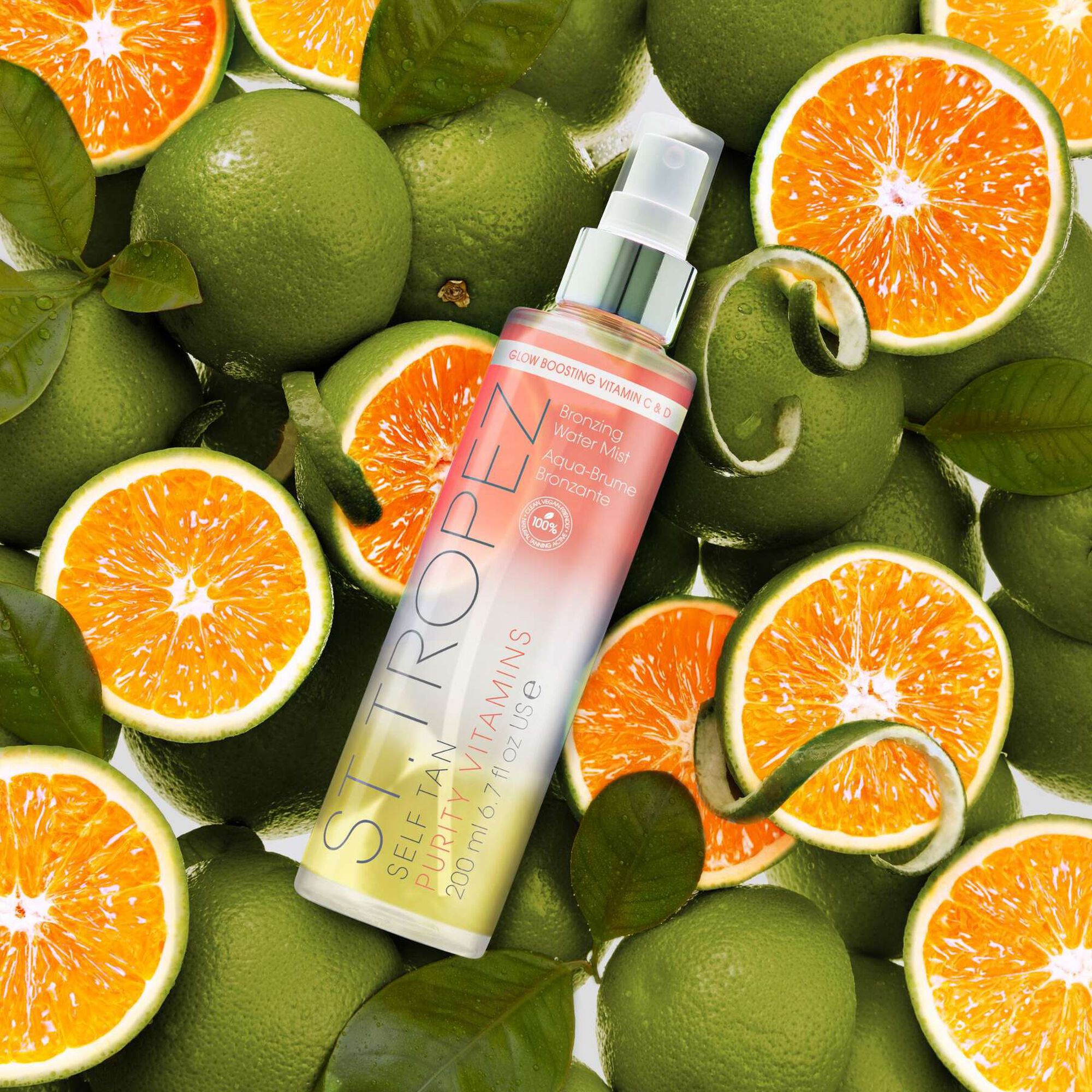 Purity Vitamins é a nova água autobronzeadora St. Tropez, enriquecida com vitaminas C e D. Leve, fresca e delicadamente perfumada, reproduz os efeitos positivos do sol sem os perigos dos raios UV. Para uma pele brilhante, dourada e luminosa e uma sensação imediata de bem-estar.