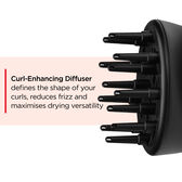 Secador com controlo do fluxo de ar e concentrador direcional fixo para maximizar a versatilidade do penteado. O concentrador incorporado roda 90° para direcionar o ar exatamente para onde pretende, proporcionando um controlo total.
