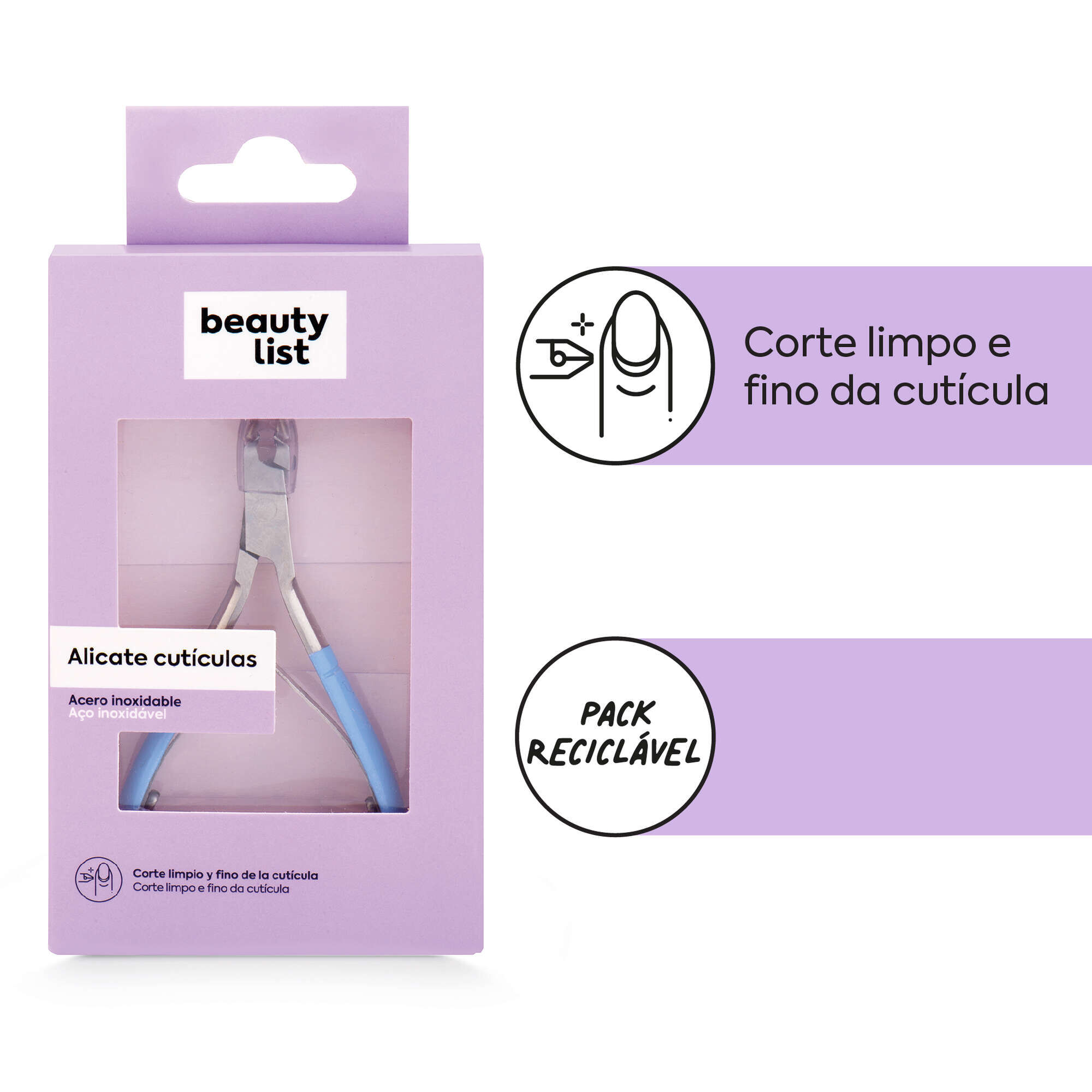 Em aço inoxidável resistente, este corta cutículas possui uma mola de ação para controlo máximo do corte. Remove suavemente as cutículas de forma rápida e sem dor para deixar as unhas com um aspeto limpo e pronto.
