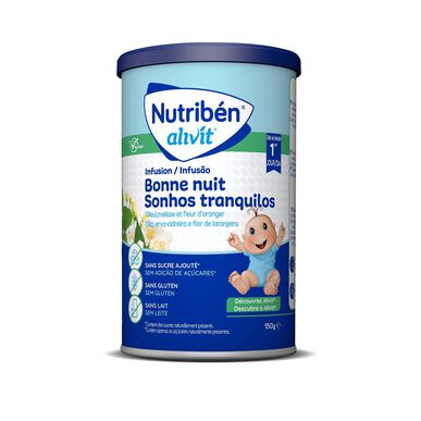 Infusão de tília, erva-cidreira e flor de laranjeira. Nutribén Infusão Alivit Sonos Tranquilos é especialmente concebido para bebés e crianças, embora possa ser consumida por toda a família.