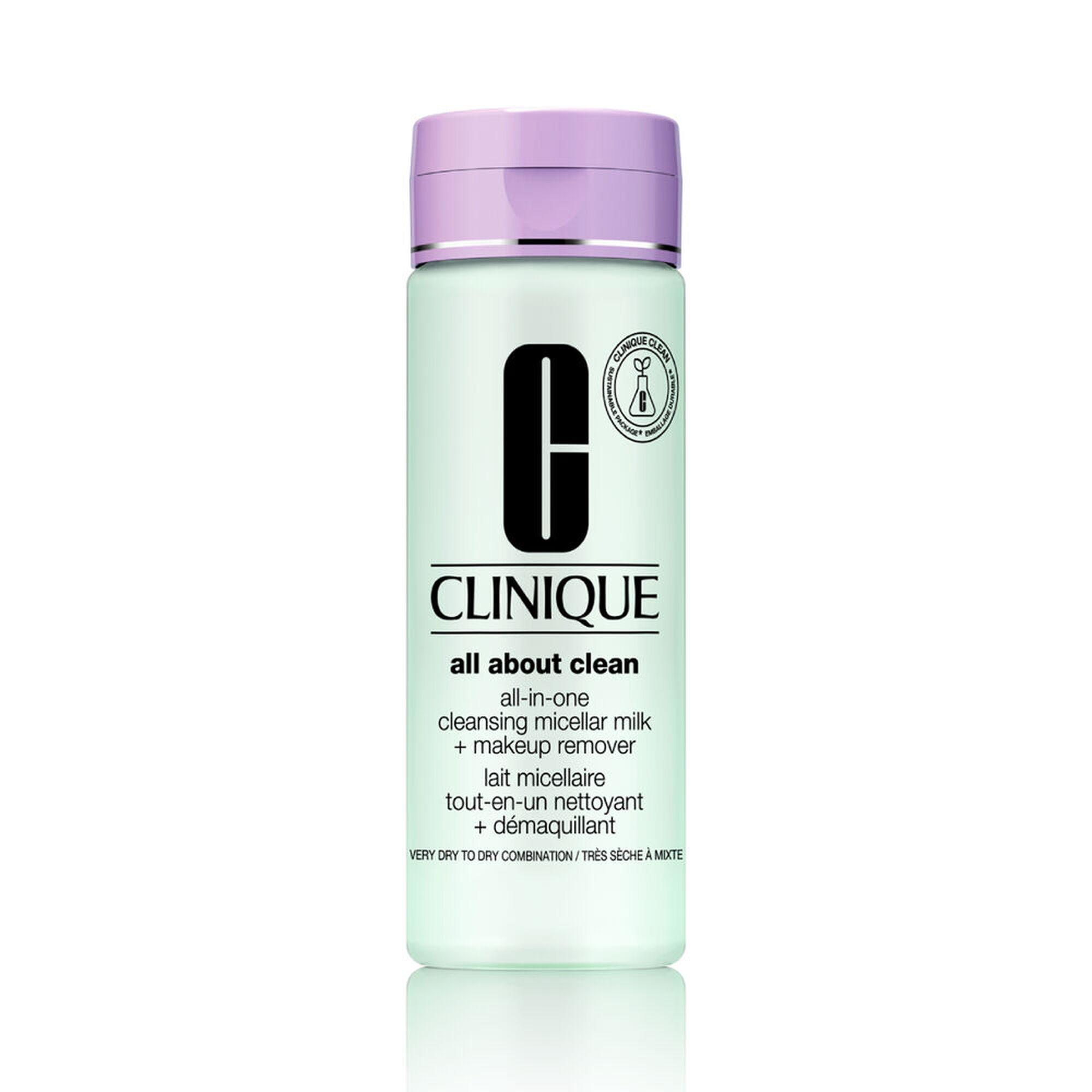 Leite micelar tudo-em-um que limpa a pele e remove a maquilhagem num único passo.