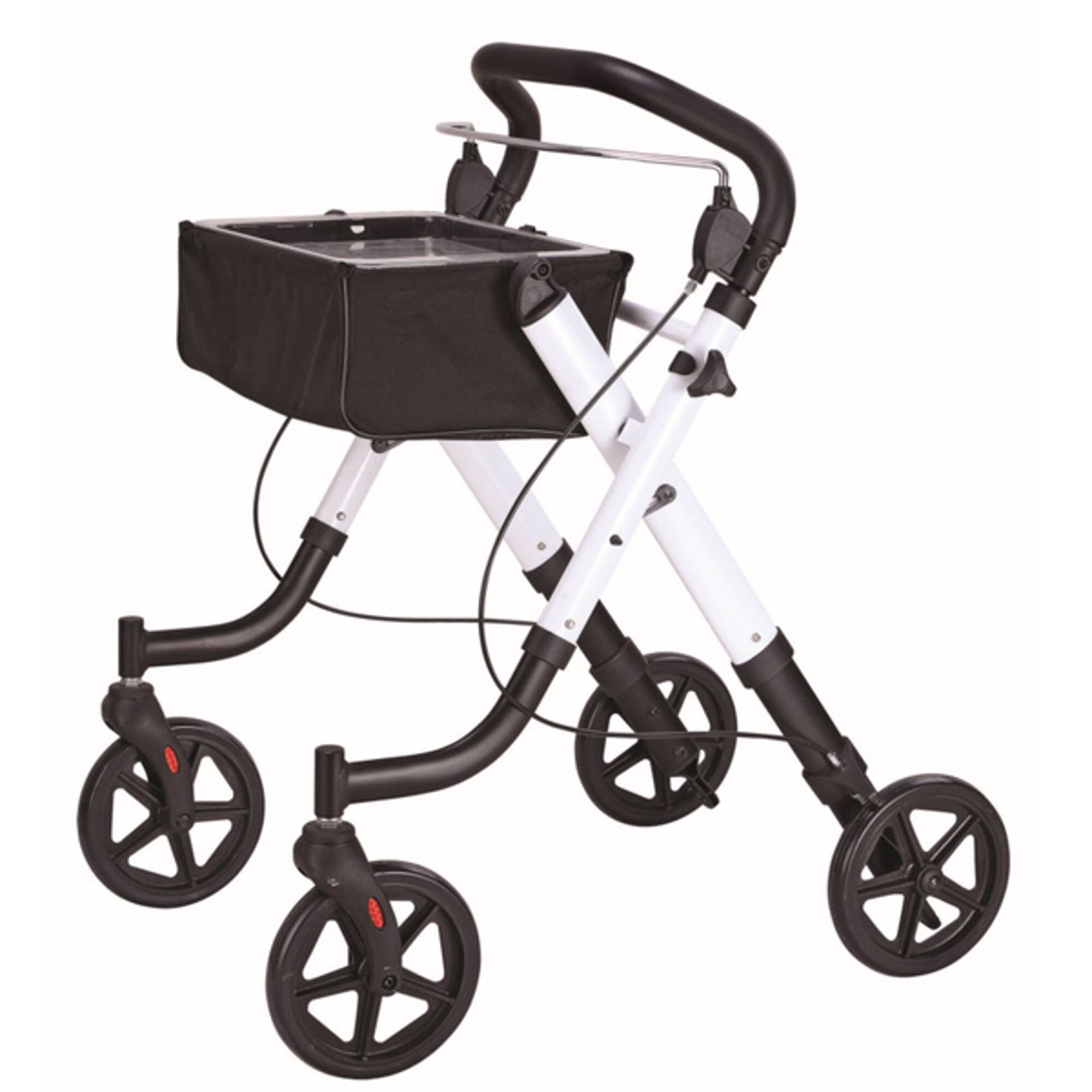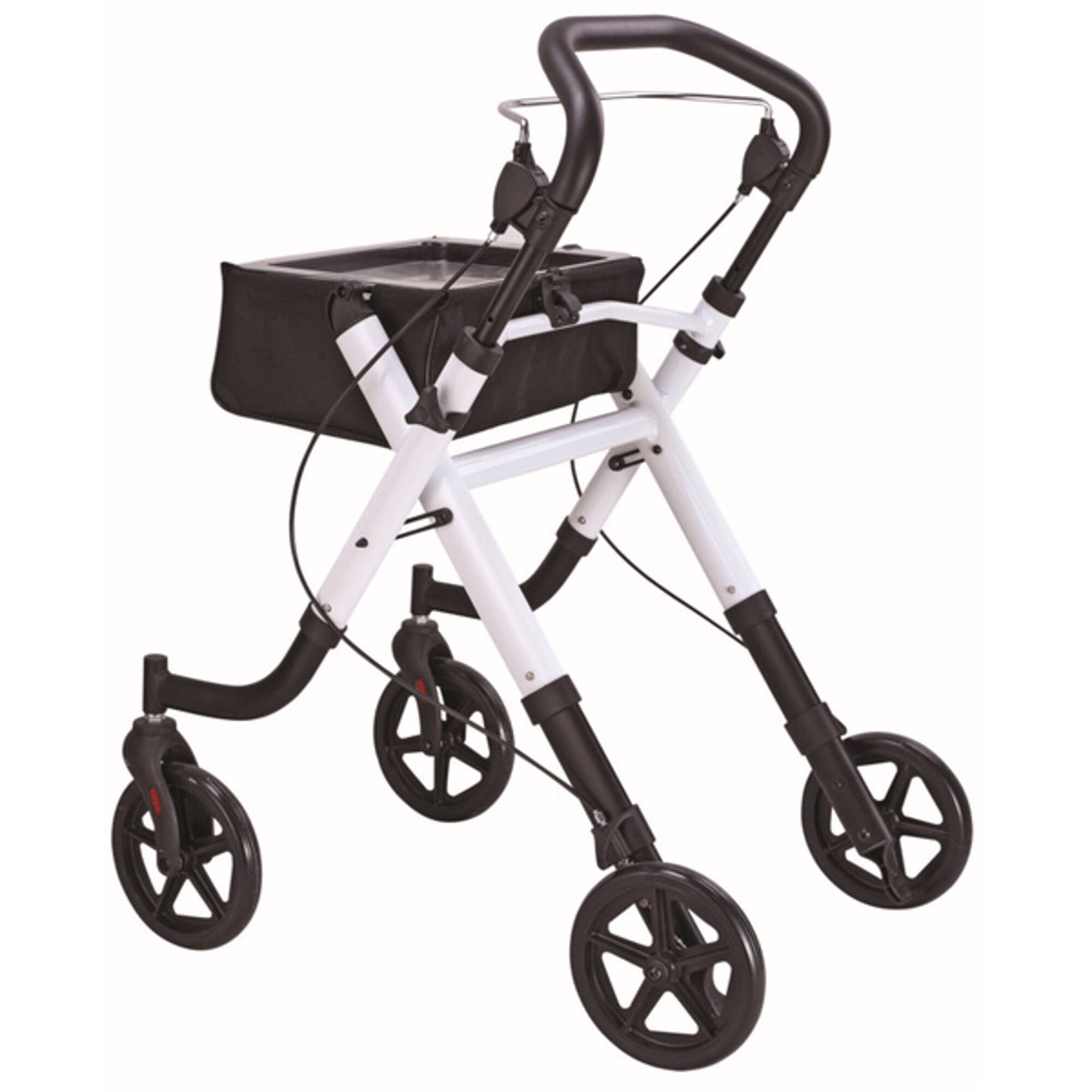 O Andarilho Rolante Dobrável com Cesto e com travagem, reduz o esforço ao caminhar. Este modelo de design moderno é dobrável e sua estrutura é feita de alumínio.