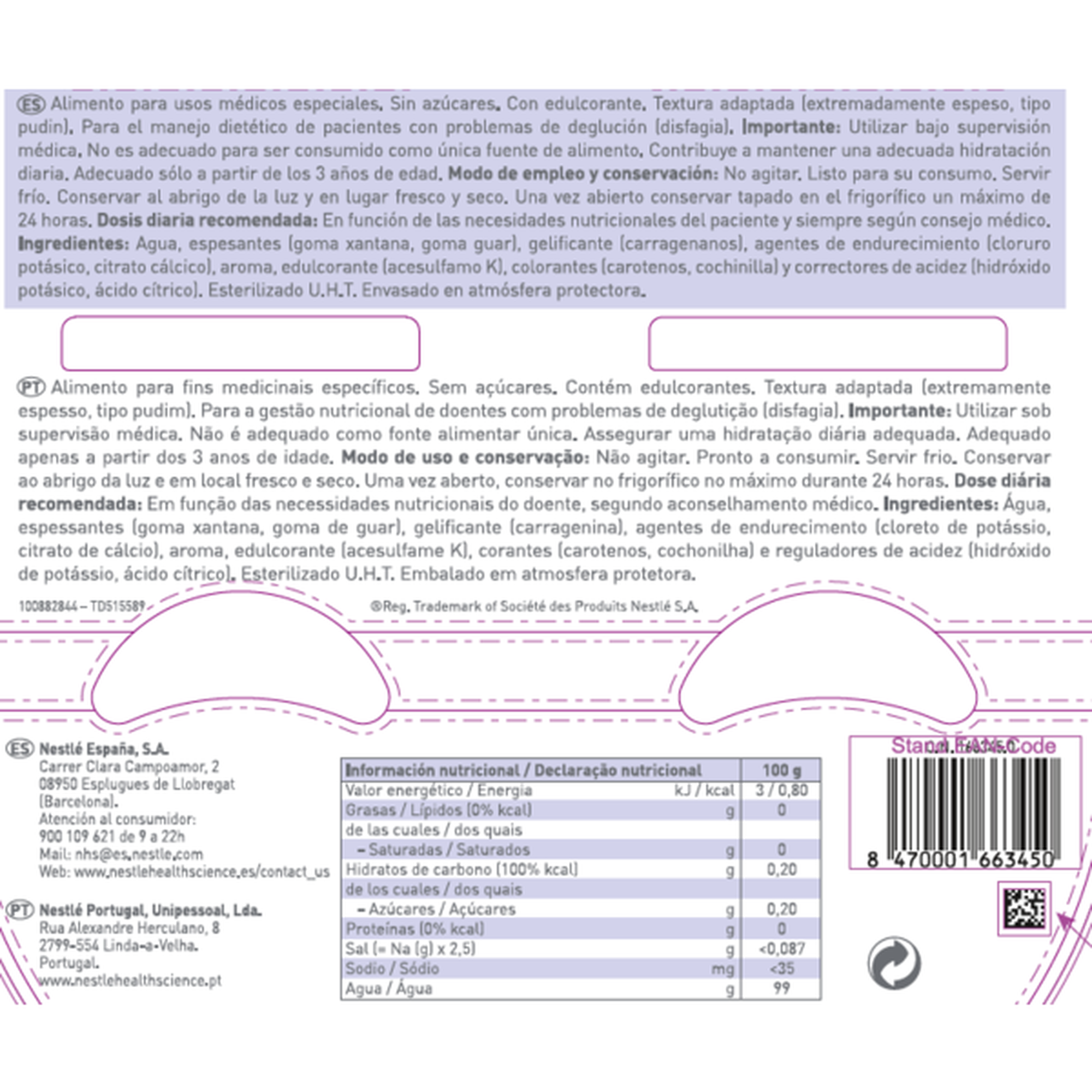 Com textura pudim/extremamente espesso, facilita a ingestão de líquidos em casos de alterações da deglutição e a hidratação.