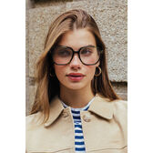 A modelo da fotografia está a usar os aros Eclat Green Forest. Na compra de um par de óculos, recebe uma totebag Haro de oferta. Imagem meramente ilustrativa.