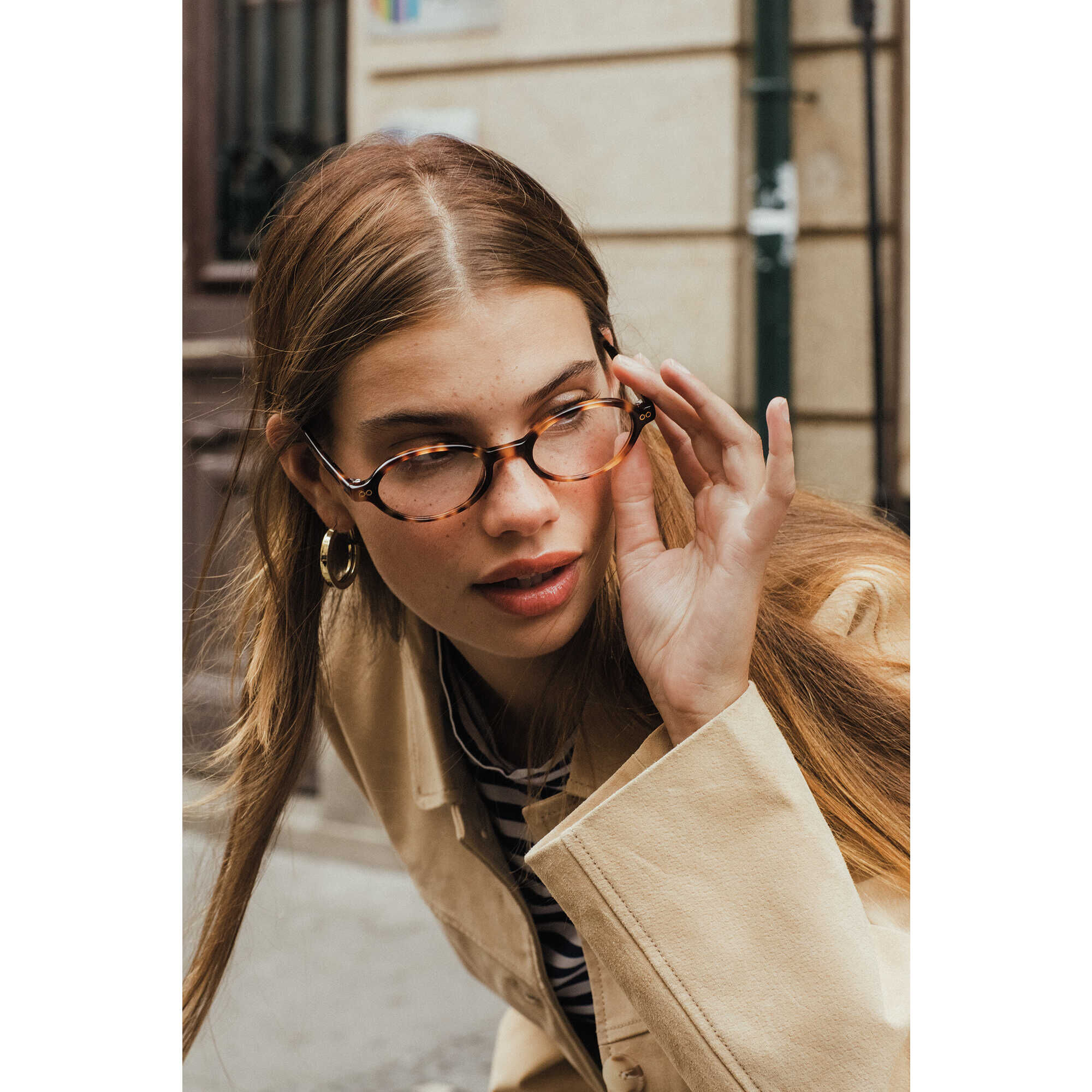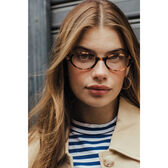 A modelo da fotografia está a usar os aros Eclipse Tortoise. Na compra de um par de óculos, recebe uma totebag Haro de oferta. Imagem meramente ilustrativa.