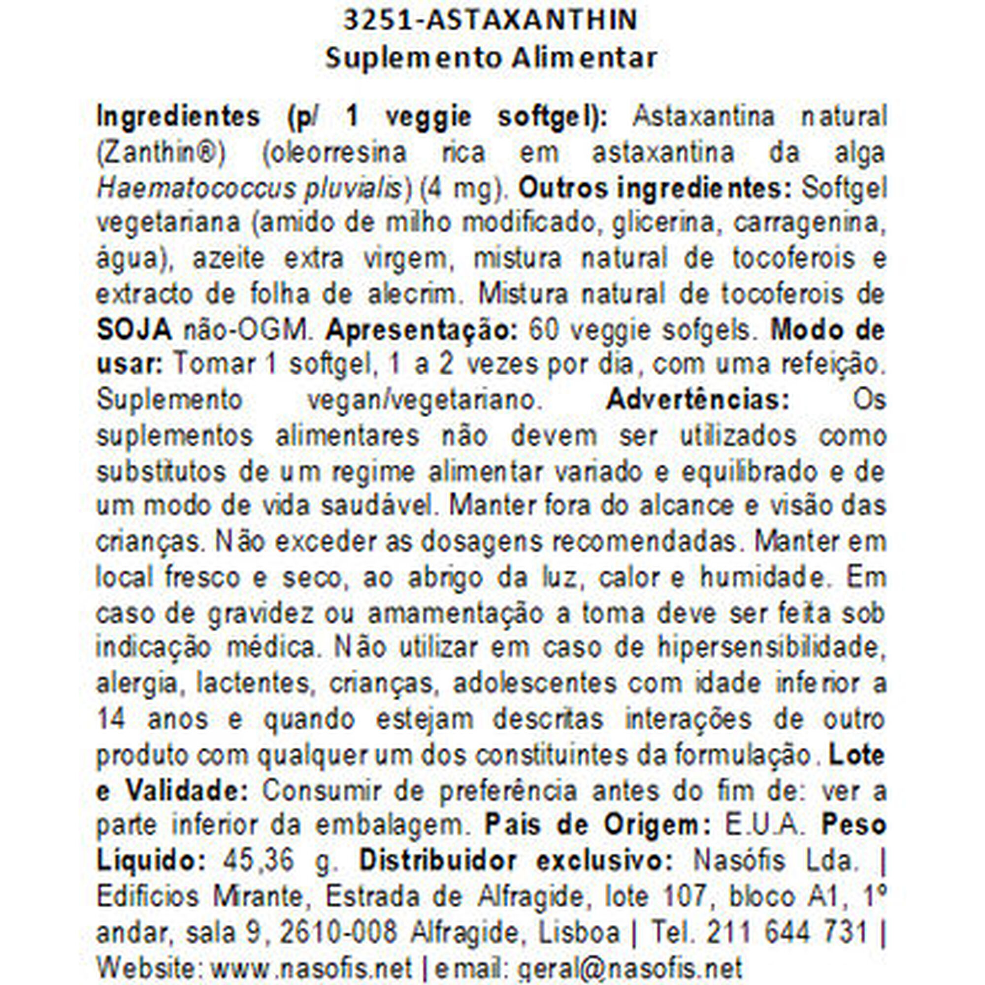 Zanthin - marca patenteada de Astaxantina proveniente da alga Haematococcus pluvialis.