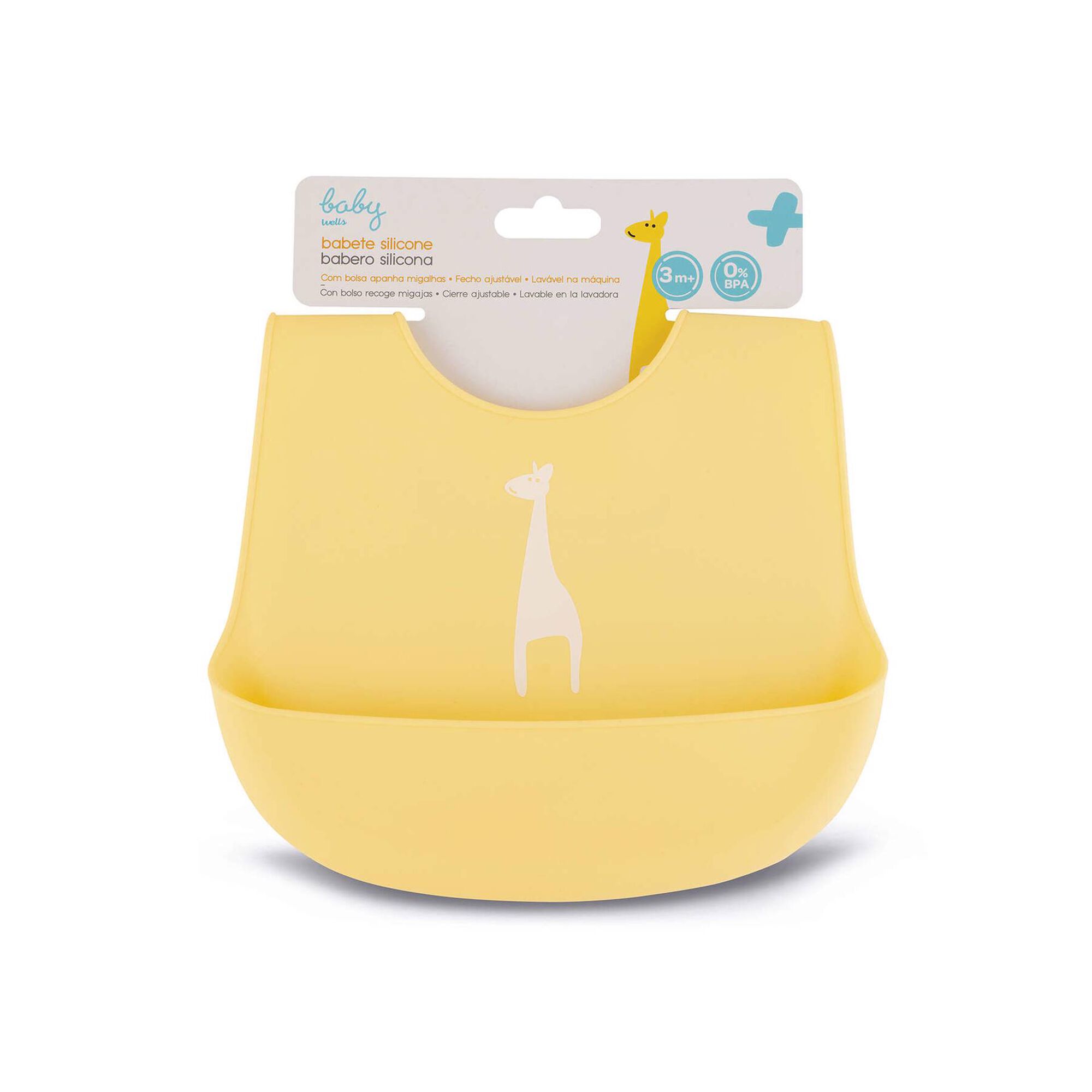 Babete de silicone em formato ergonómico, com material macio e impermeável. A bolsa "apanha migalhas" permite alimentar o bebé facilmente sem ter de se preocupar com manchas na roupa. Ideal para utilizar em casa ou em viagem.