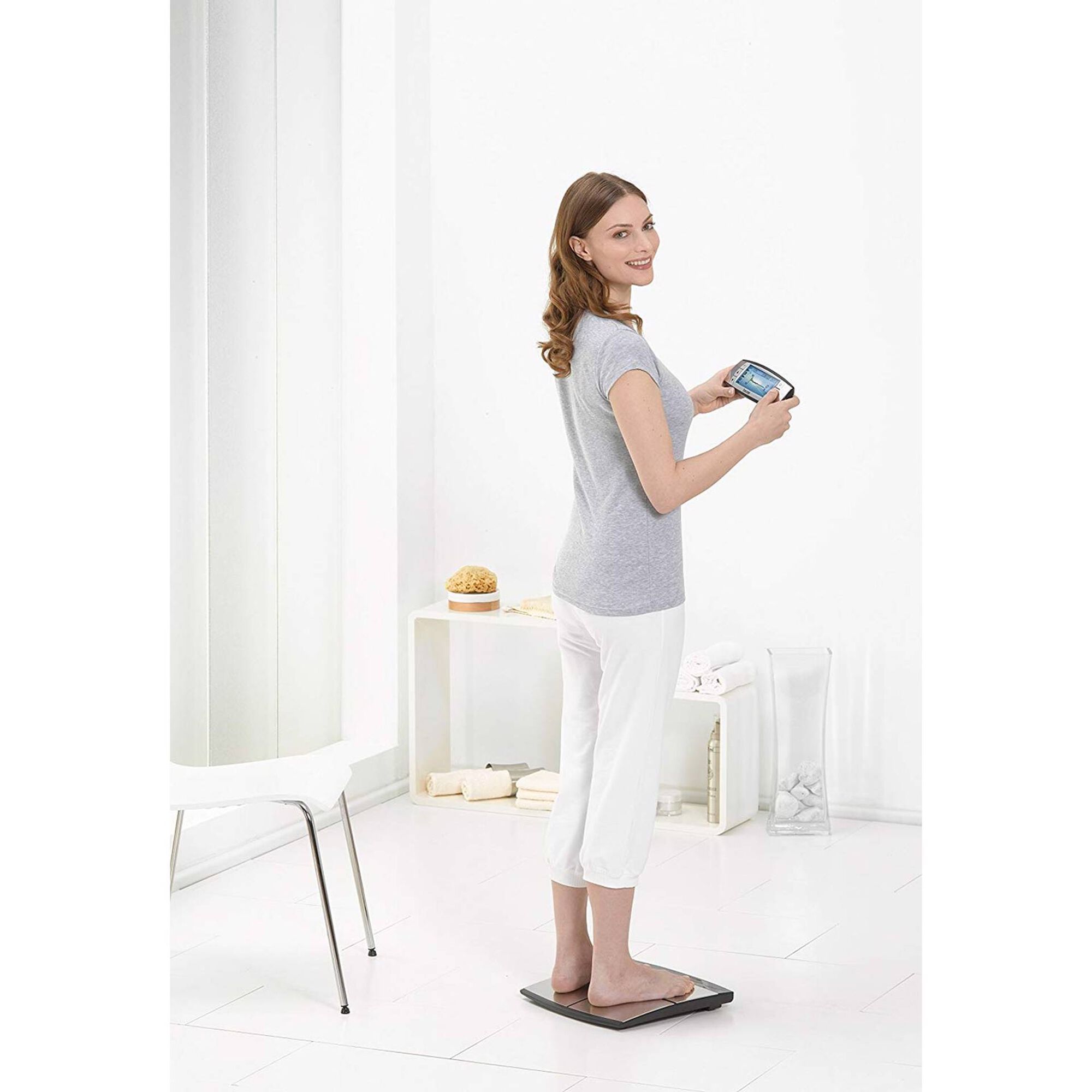 Oferece uma análise detalhada do seu corpo e por isso consegue detetar o seu peso, gordura corporal, massa muscular, água corporal, ingestão calórica.