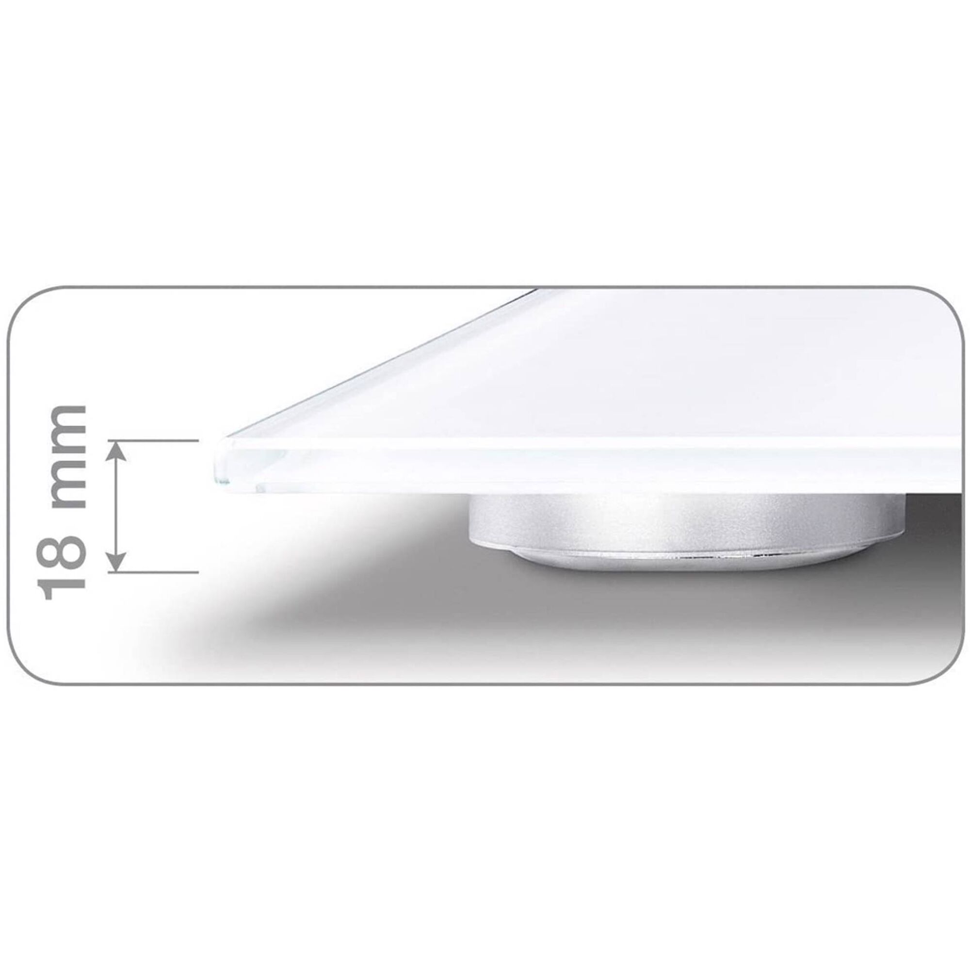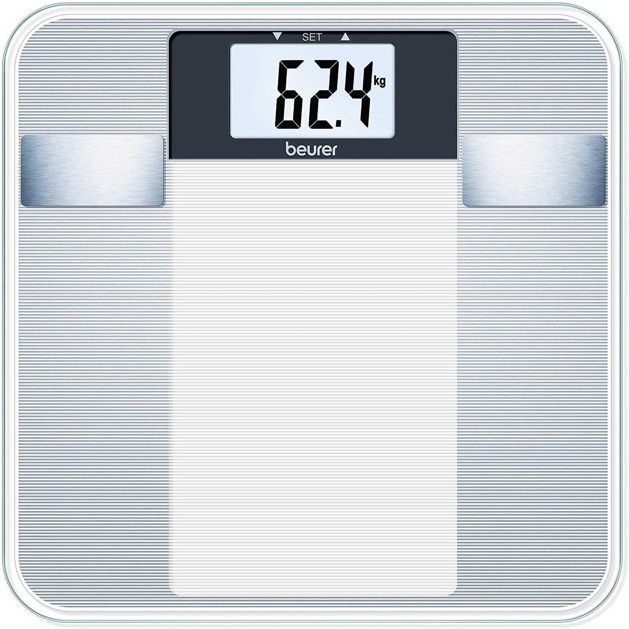 A balança de diagnóstico em vidro BG 13 da marca Beurer, permite determinar o seu peso, exibe a percentagem de gordura, água corporal, massa muscular, massa óssea e calorias.