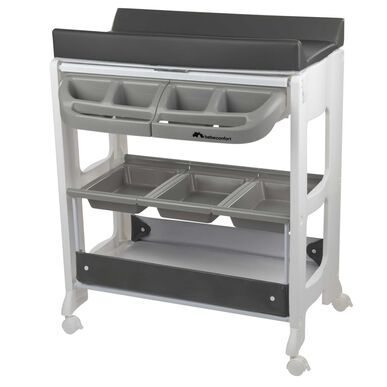 Com a unidade de banho e troca de roupa e fraldas Dolphie da Bebeconfort, troque e dê banho ao bebé com tudo o que precisa à mão. Graças ao colchão fácil de levantar com apenas uma mão, os pais poderão dar banho ao bebé sem ter de se dobrar.