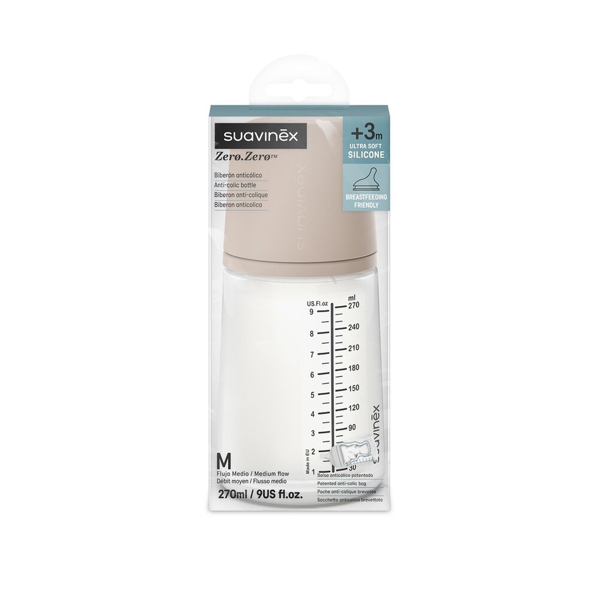 O sistema deste inovador biberão faz com que as borbulhas desapareçam para evitar a ingestão de ar, ajudando a reduzir as cólicas gasosas do bebé. O biberão zero-zero Suavinex imita física e fisiologicamente o mamilo da mãe, evitando a confusão.