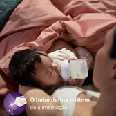 O bebé pode sugar, engolir e respirar seguindo o seu ritmo natural, tal como no seio. As novas tetinas Natural Response são diferentes das tetinas de fluxo livre, o leite só flui quando o bebé chupa ativamente. Tal como a amamentação, pode demorar algum tempo a acertar. Isto é completamente normal.