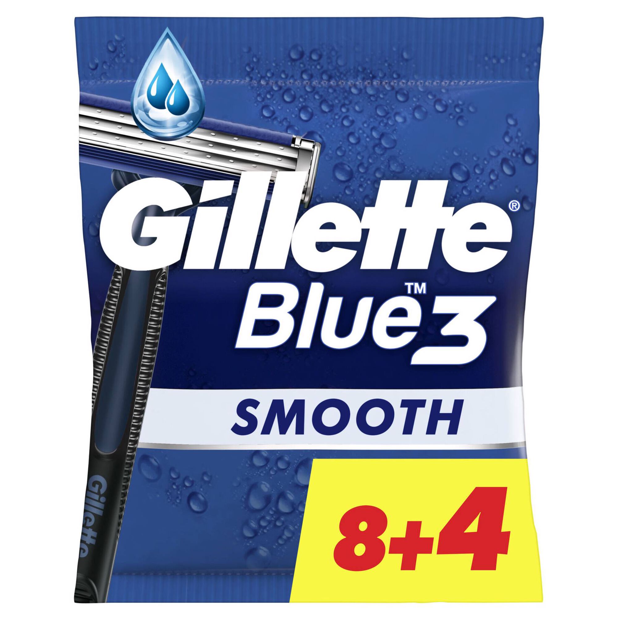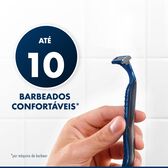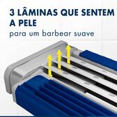 A máquina de barbear descartável Blue3 Smooth da Gillette inclui 3 lâminas revestidas a crómio que deslizam facilmente pela pele e uma cabeça rotativa a 40° que se ajusta aos contornos do rosto.