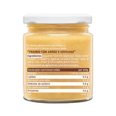 Boião de refeição para bebés acima dos 6 meses, constituído por frango e arroz de origem 100% biológica.