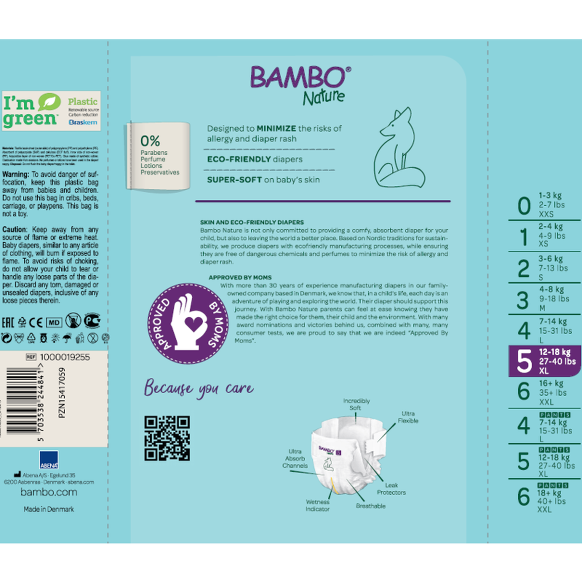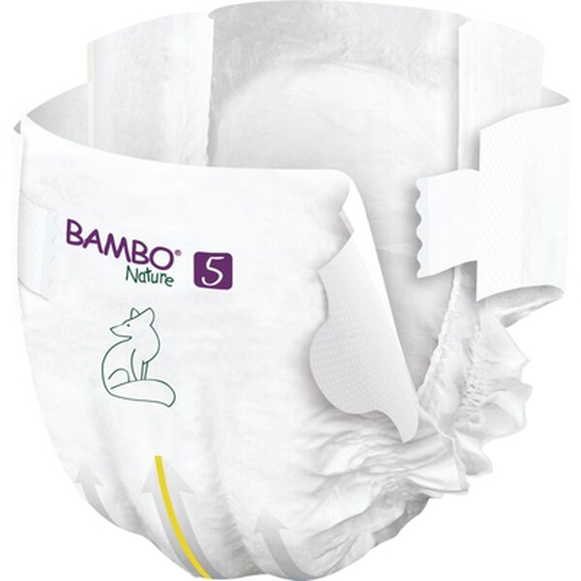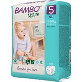 As Fraldas Bambo Nature T5 são ideais para bebés entre 12 e 18 kg.