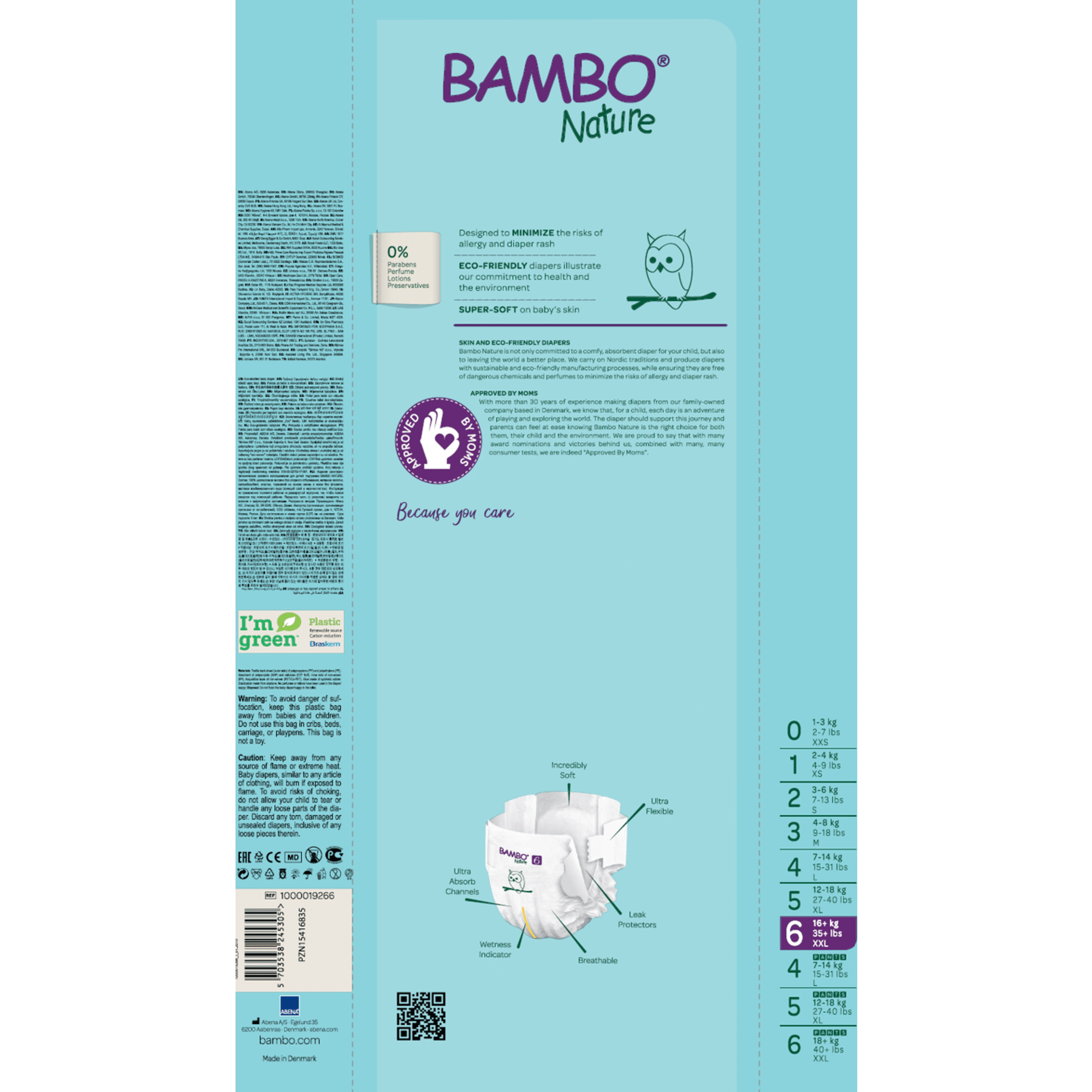 As Fraldas Bambo Nature T6 são ideais para bebés a partir dos 16kg.