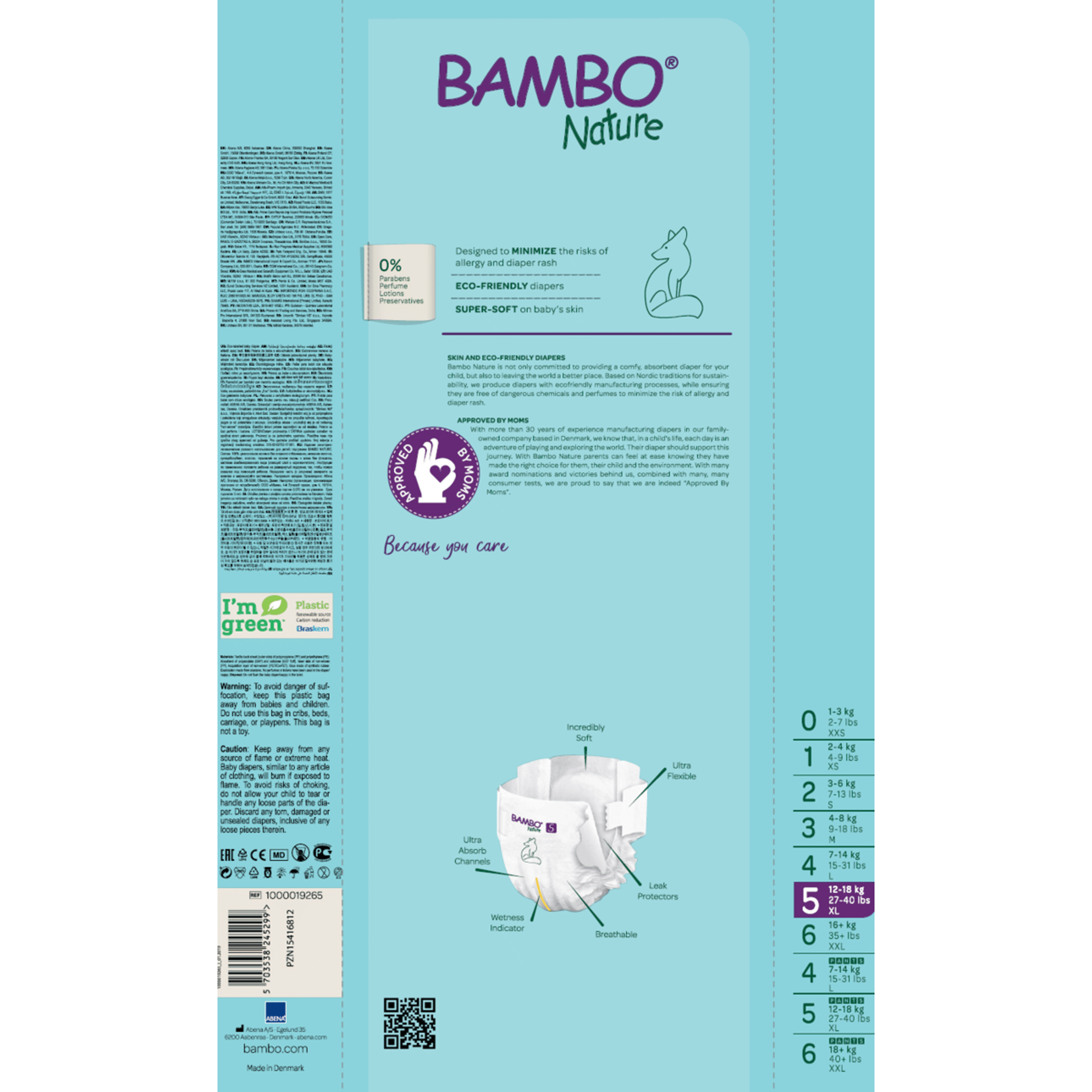 As Fraldas Bambo Nature T5 são ideais para bebés entre 12 e 18 kg.