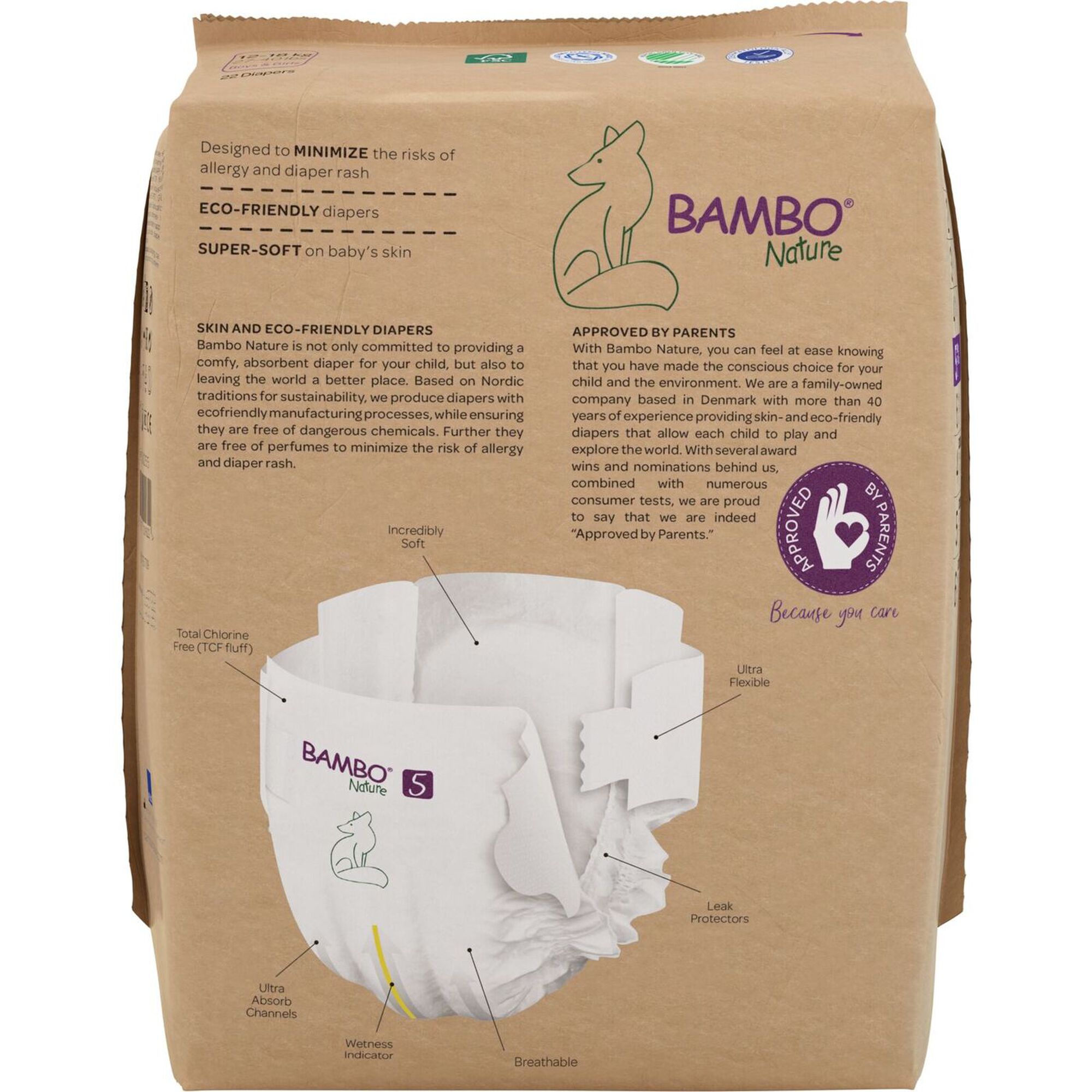 As Fraldas Bambo Nature T5 são ideais para bebés entre 12 e 18 kg.
