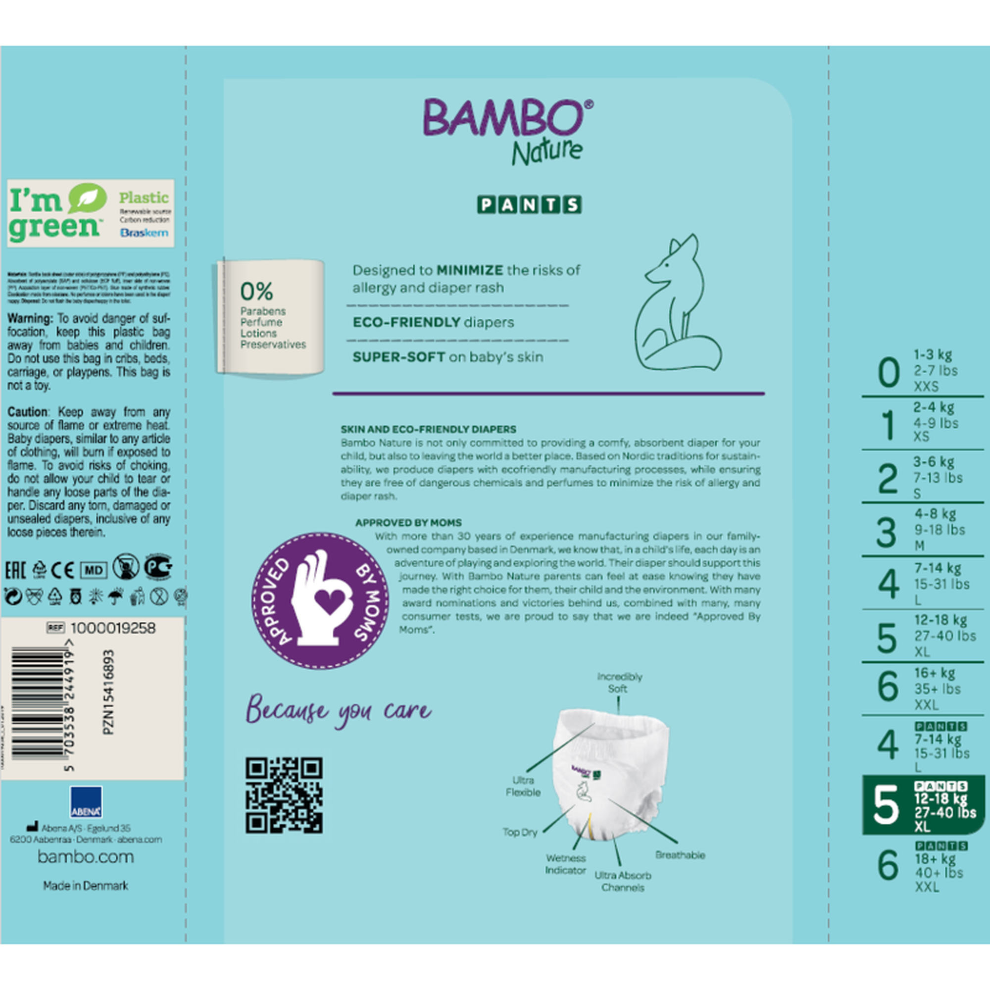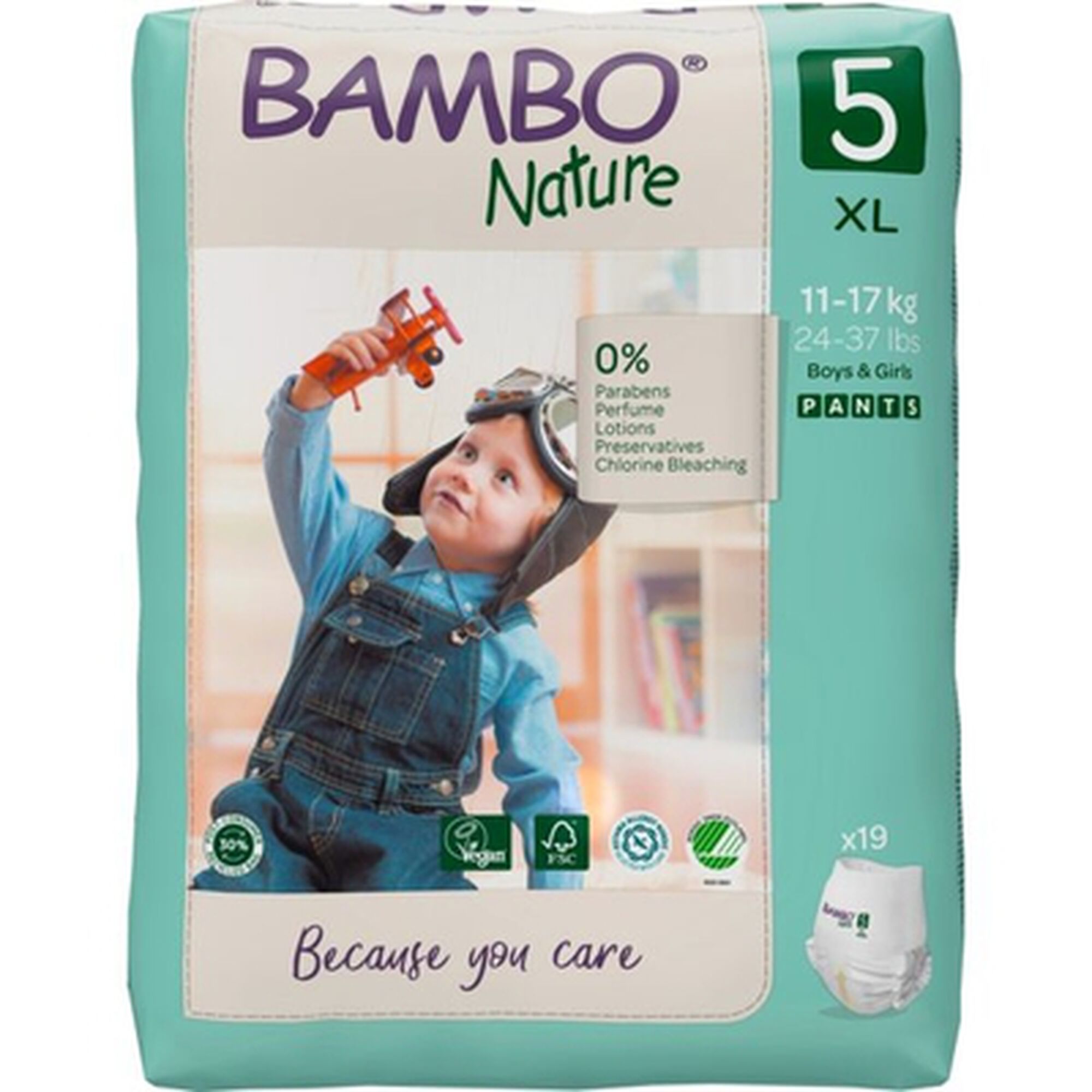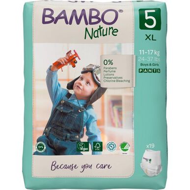 As Fraldas Cueca Bambo Nature T5 são ideais para bebés entre os 12kg e 18 kg.