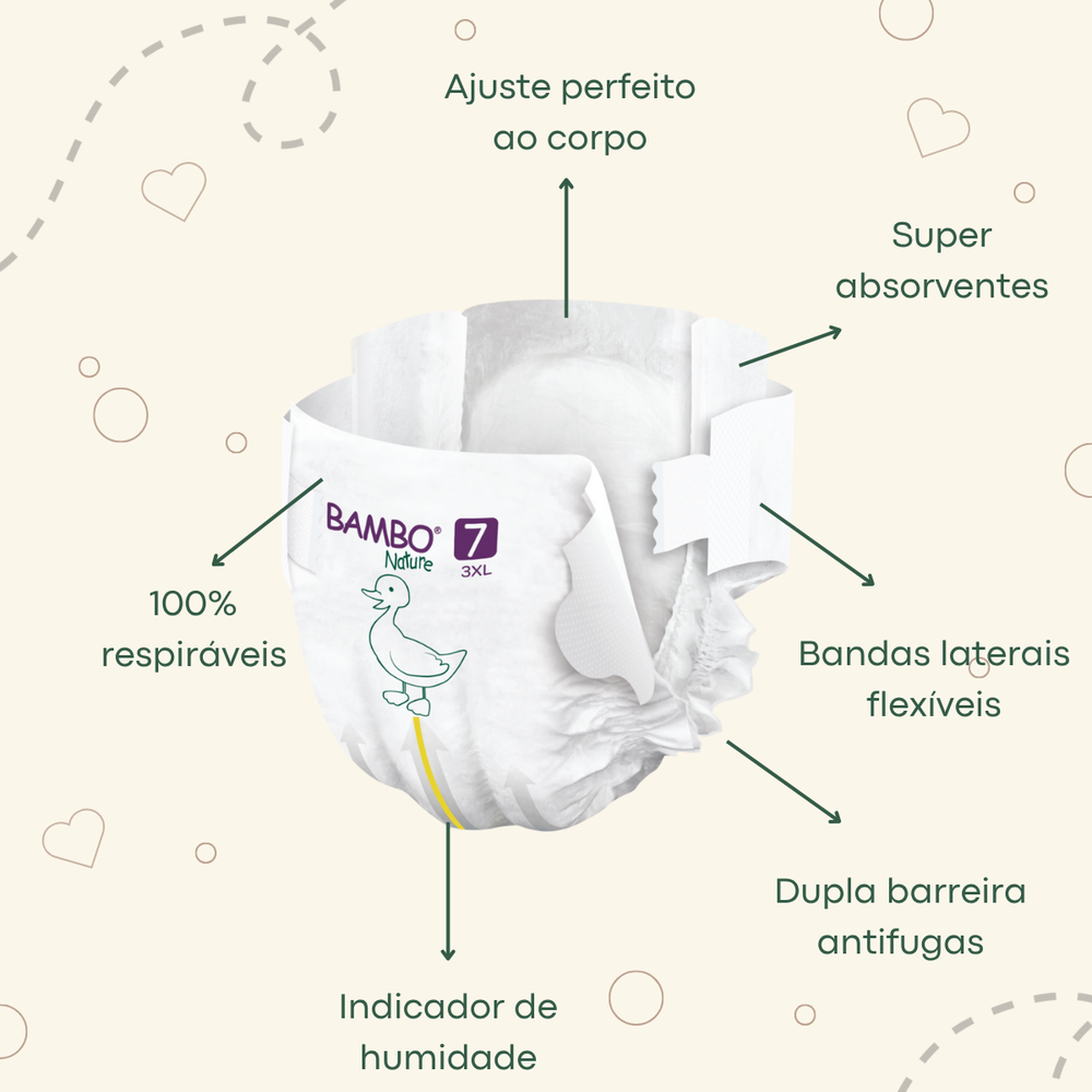 As Fraldas Bambo Nature T7 são perfeitas para bebés e crianças com mais de 18kg.