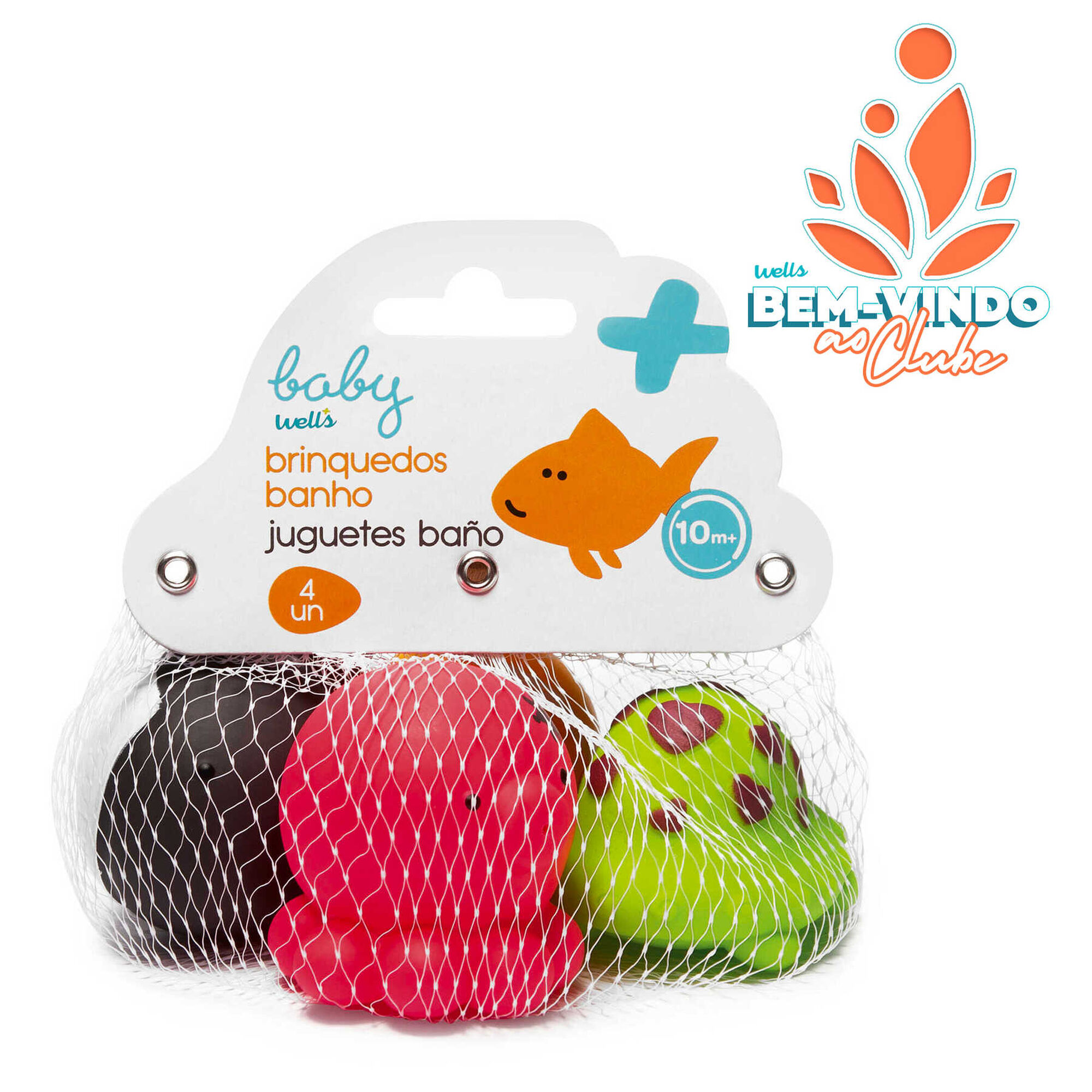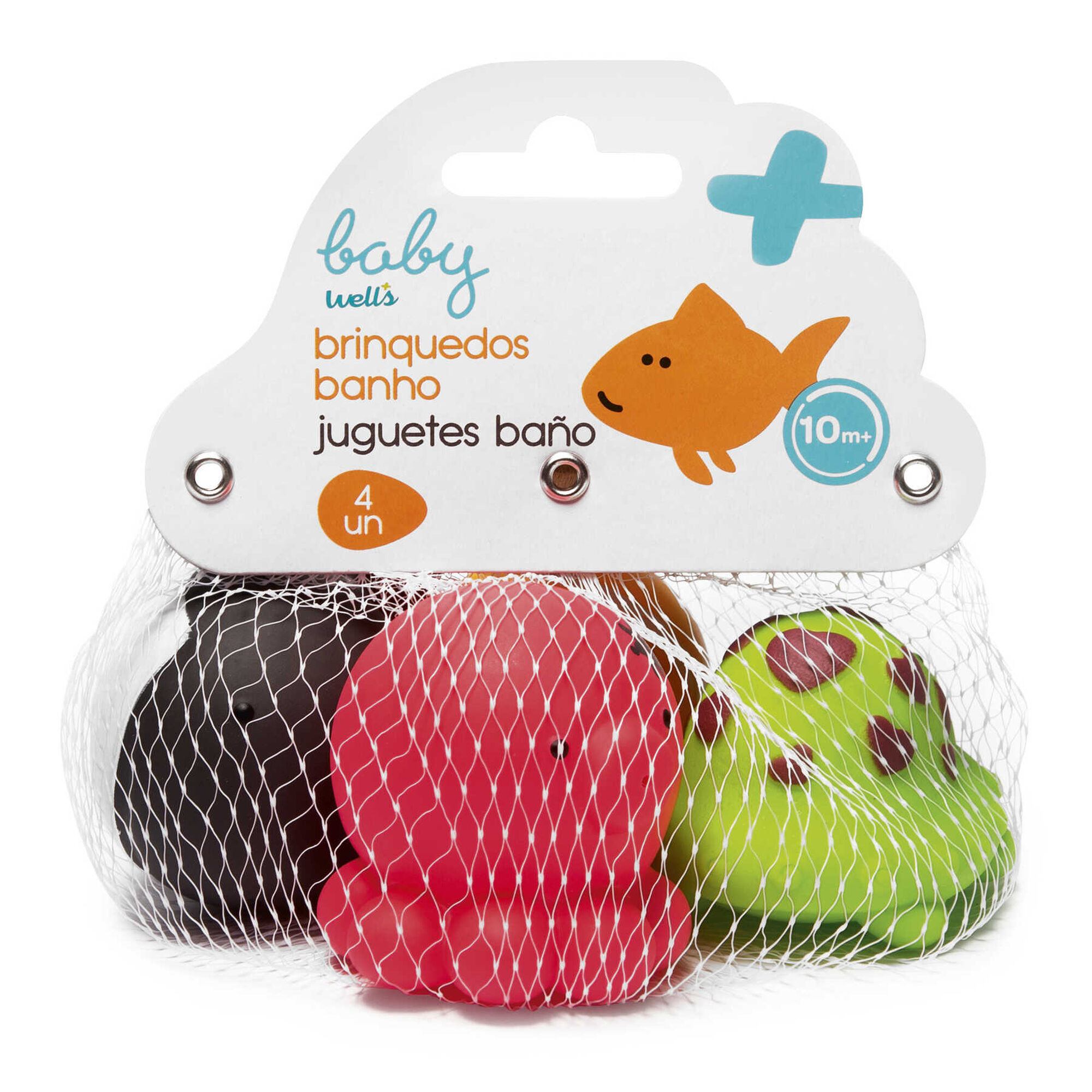 Estas 4 unidades de brinquedos de banho, estes bonecos prometem trazer à hora do banho do bebé muitas brincadeiras na água.