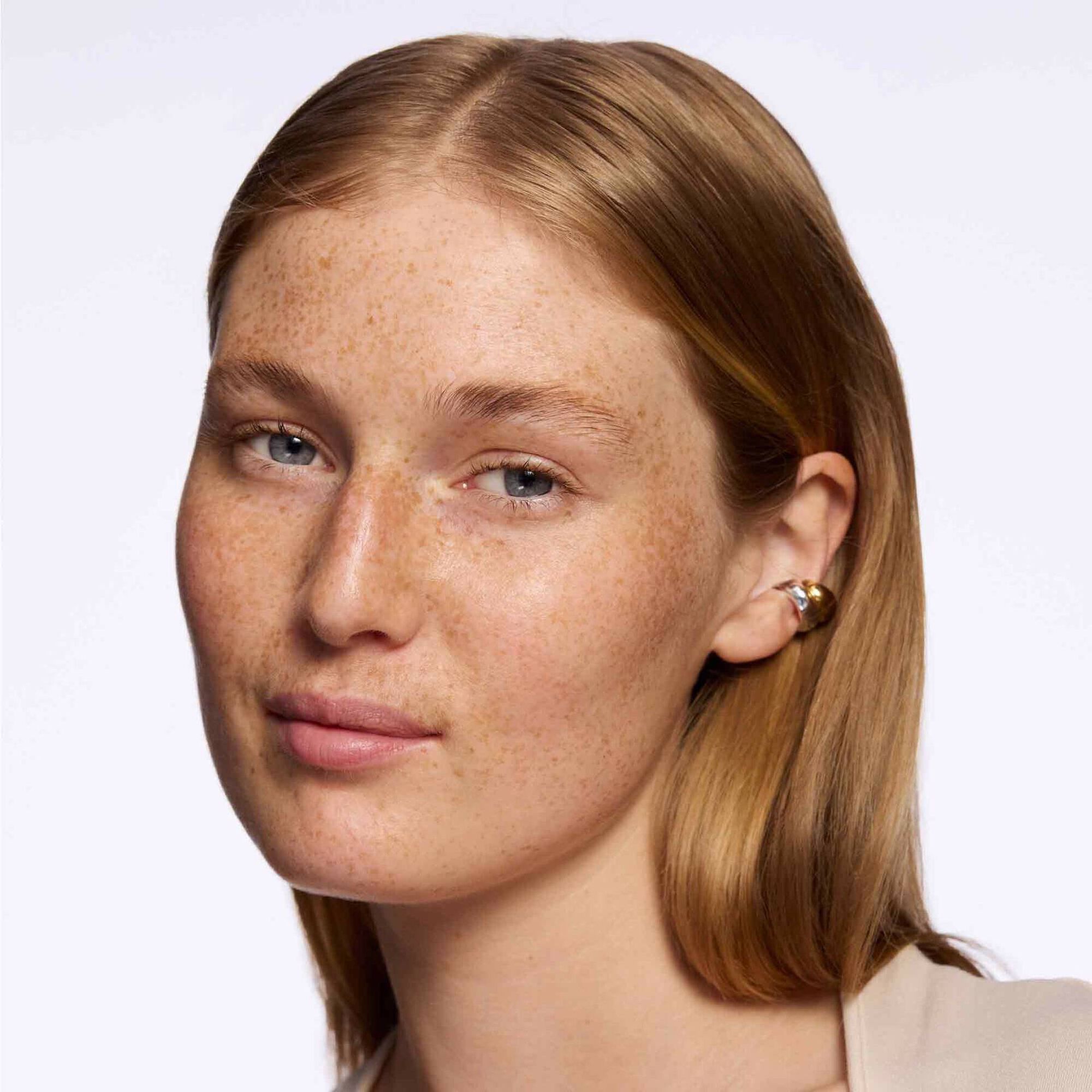 Para criar um visual de maquilhagem elegante, aplique uma parte da Laminating Wax Brow Sleek de Catrice e utilize o pincel de extremidade dupla para as dar a forma que quiser. A textura branca ficará transparente durante este processo.