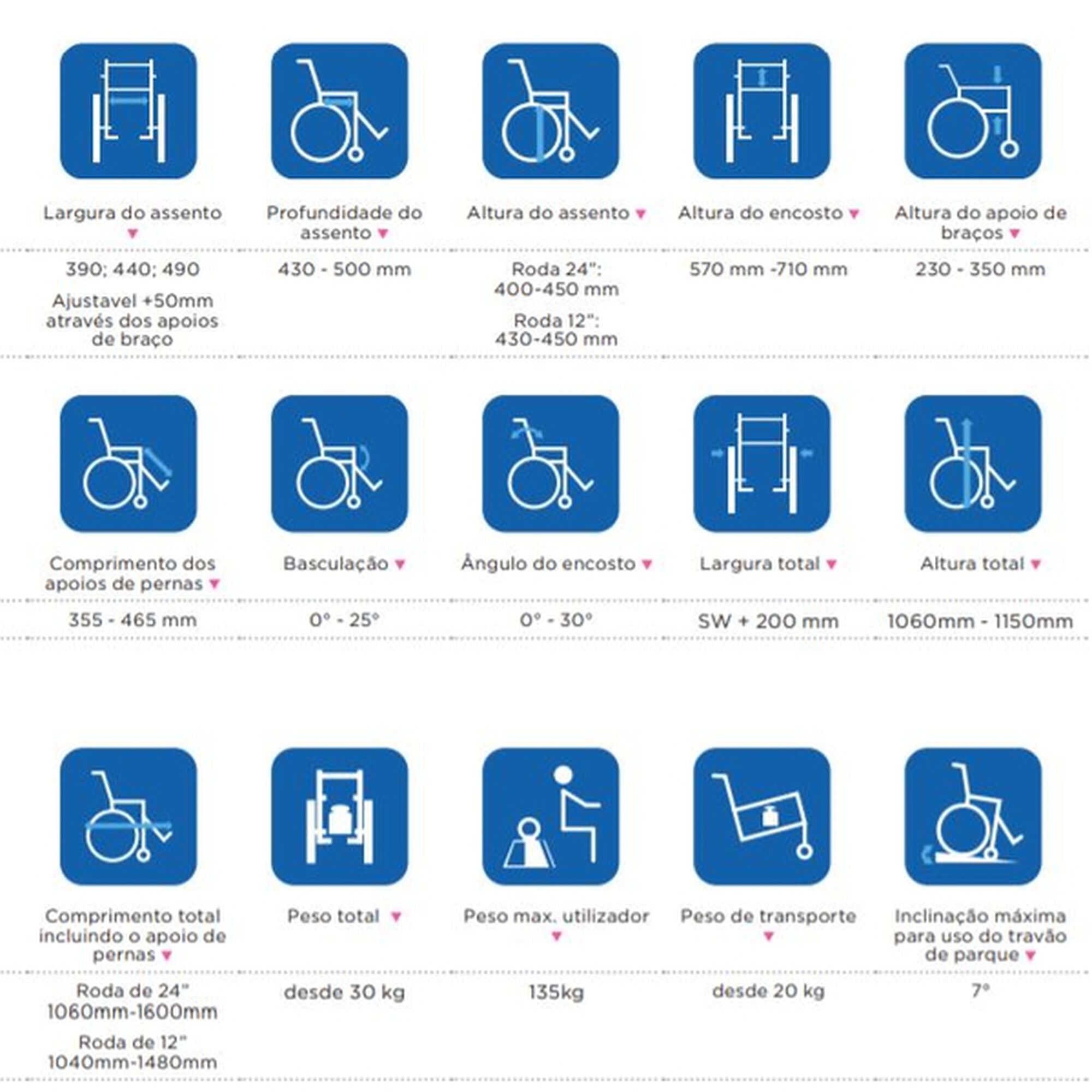 O design de chassis compacto oferece uma soberba manobrabilidade, especialmente em ambientes interiores. As rodas traseiras podem ser avançadas para permitir um melhor acesso ao aro motor, no caso dos utilizadores que apresentam competências para auto-propulsão.