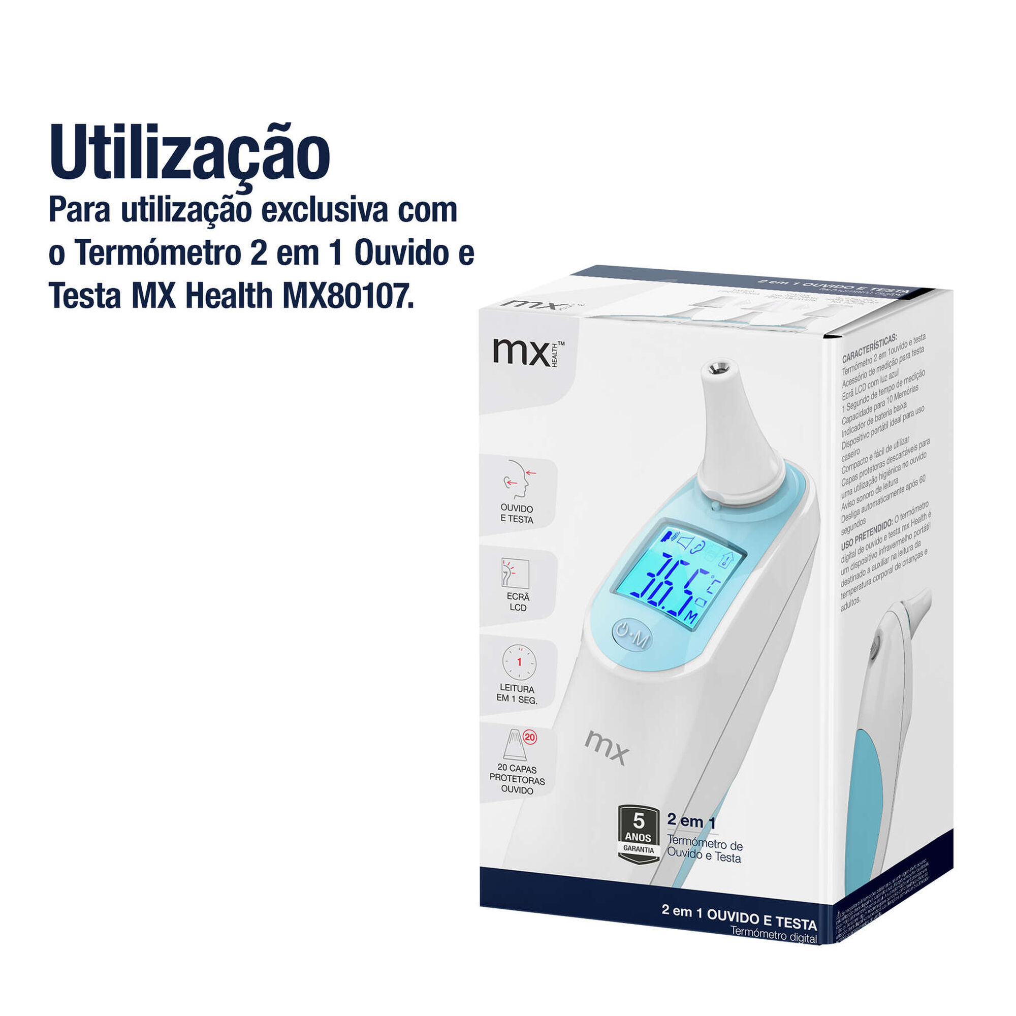 Capas protetoras de ouvido descartáveis para serem utilizadas com o Termómetro Digital MX80107.