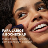 A nossa fórmula 3-em-1 para os lábios e bochechas com uma cor rica sem secar oferece uma hidratação durante 24 horas e ajuda a proteger contra a perda de colagénio graças à sua proteção solar com FP30.