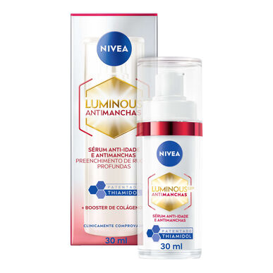 Combinando a eficácia comprovada da redução antimanchas do ingrediente patenteado LUMINOUS630® com o renome da NIVEA em termos de desempenho anti-dade, o nosso sérum: