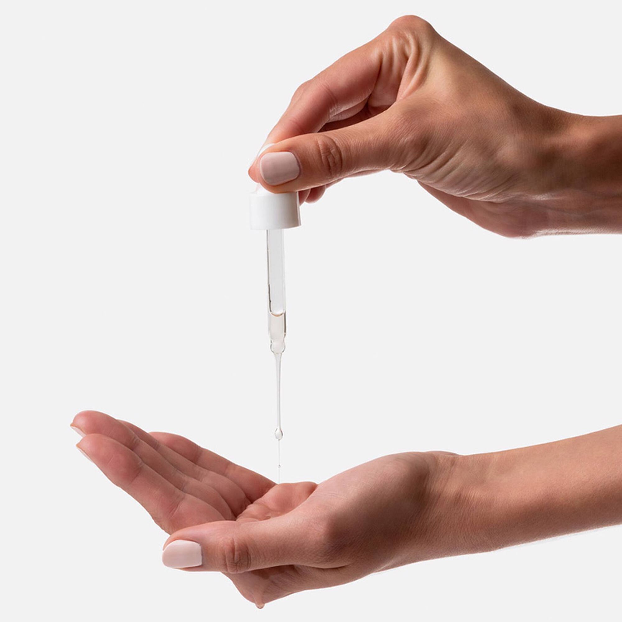 Aplicar 2-3 gotas com a ponta dos dedos e massajar suavemente sobre o rosto, pescoço e/ou corpo.