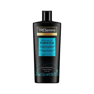 O champô Tresemmé Purify & Hydrate livra a sua pele das impurezas e óleo excessivos, enquanto hidrata o seu cabelo desde as raízes.