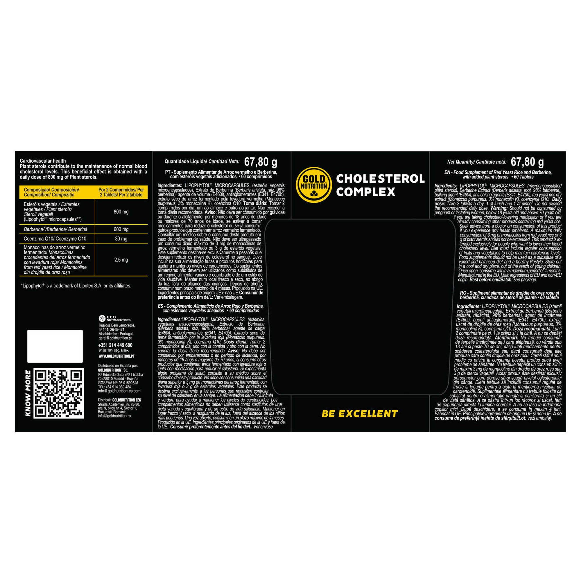 Este suplemento contém Esteróis Vegetais microencapsulados (Lipophytol®), reconhecidos por inibir a absorção do colesterol a nível intestinal; Berberina, um composto vegetal que apoia a regulação metabólica; Monacolinas provenientes do Arroz Vermelho Fermentado, que ajudam a reduzir os níveis de colesterol LDL; e Coenzima Q10, um potente antioxidante que protege contra os danos oxidativos associados ao colesterol elevado. Esta sinergia de ingredientes oferece uma abordagem eficaz e segura para a gestão do colesterol e dos triglicéridos.
