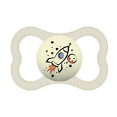 Especialmente desenhada para bebés a partir dos 16 meses, a chupeta MAM Supreme tem um escudo leve e com grandes orífícios de ventilação, para facilitar a transpiração da pele. Ideal para bebés com pele sensível e que desenvolvem dermatites.