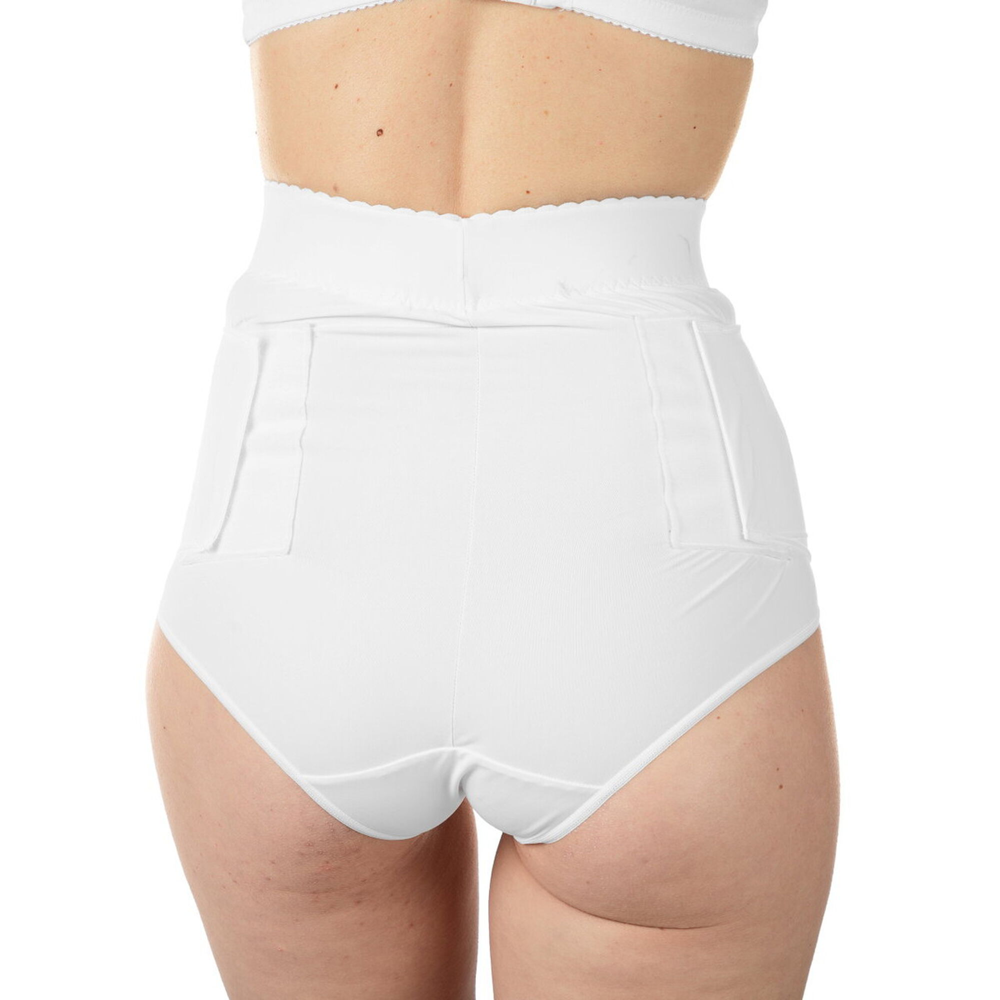 A cinta regulável pós-parto, com abertura regulável entre pernas, é ideal logo a seguir ao parto, ajudando o abdómen a recuperar a sua forma original. É ideal para quem procura conforto e não tem especiais problemas de costas. Reforço modelador na frente e faixas laterais reguláveis. Tamanho 38.